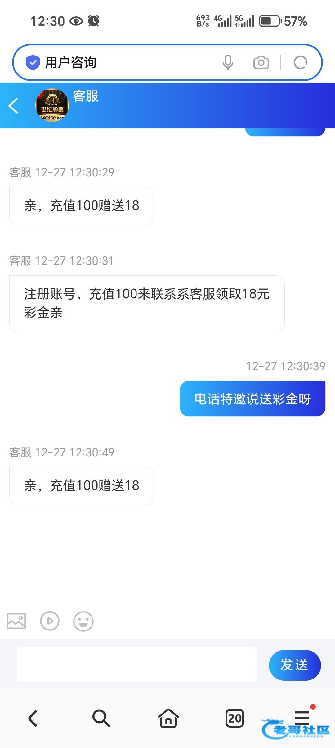 有毛线,说是充值100送18
