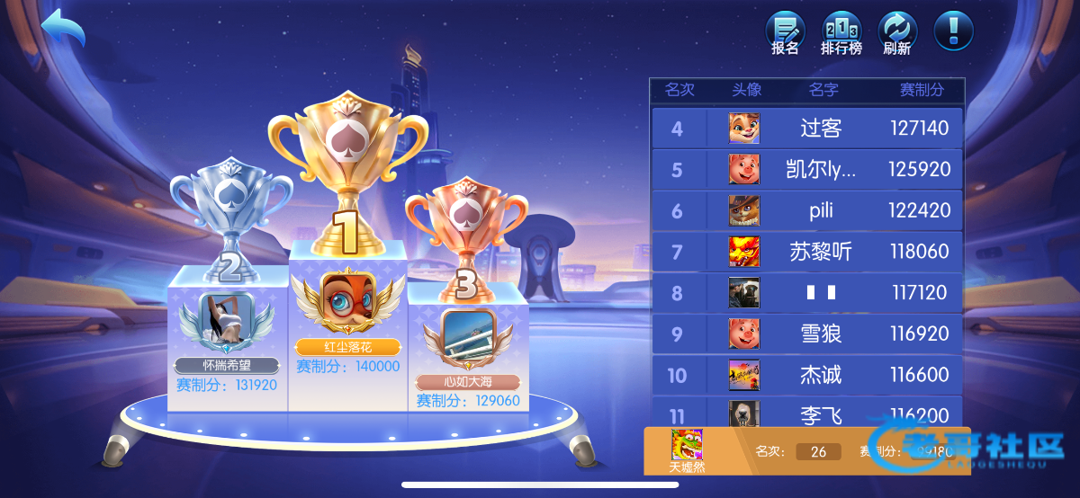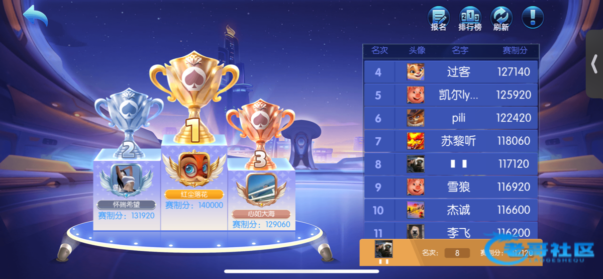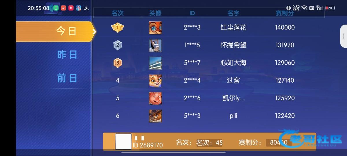 兄弟每天的排名我都记录了的都送了,人家第一名我都给了144,自己当时不发过了几天来领,名次也发的不对