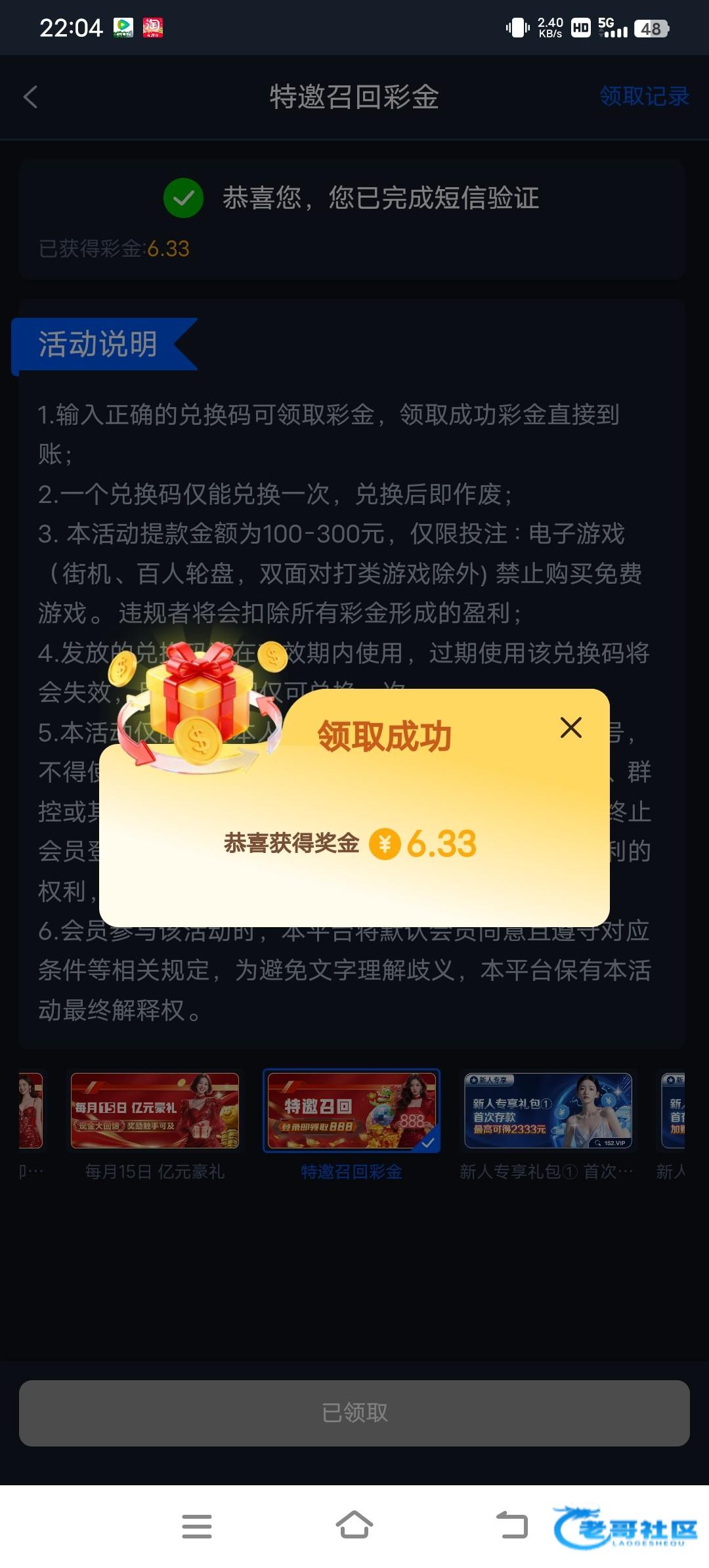 星系好几个都收到短信了,去了也不能领