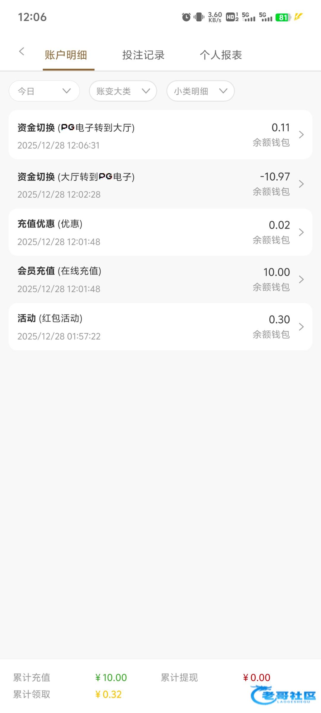 今天要充值100才能领!白送他10块!6毛一转打了12流水