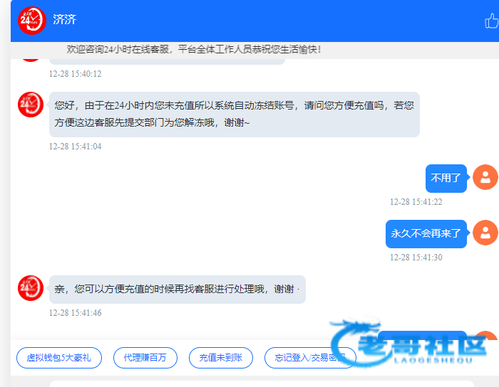几年的老账号 这几天活动 红包出200让我充值200打流水才能提 提款前2天都有充值记录,结果24小时没充值账号都冻结 这平台开始黑了,这种就是无限充值套路 上1个就是008这种老台子 也是老用户几年账号说黑就黑,这些台格局越来越小了