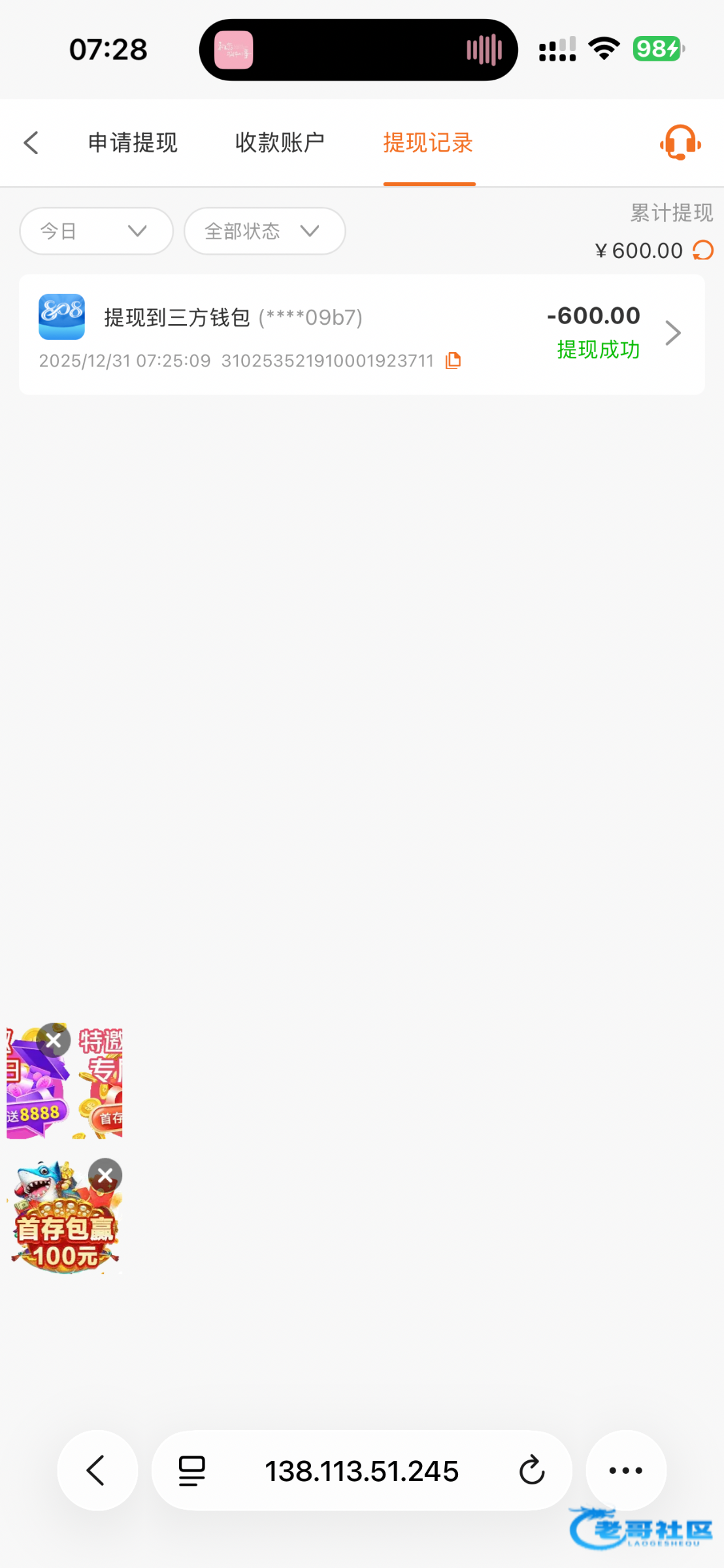 打到100提现充了38,最后特么还是只提了100