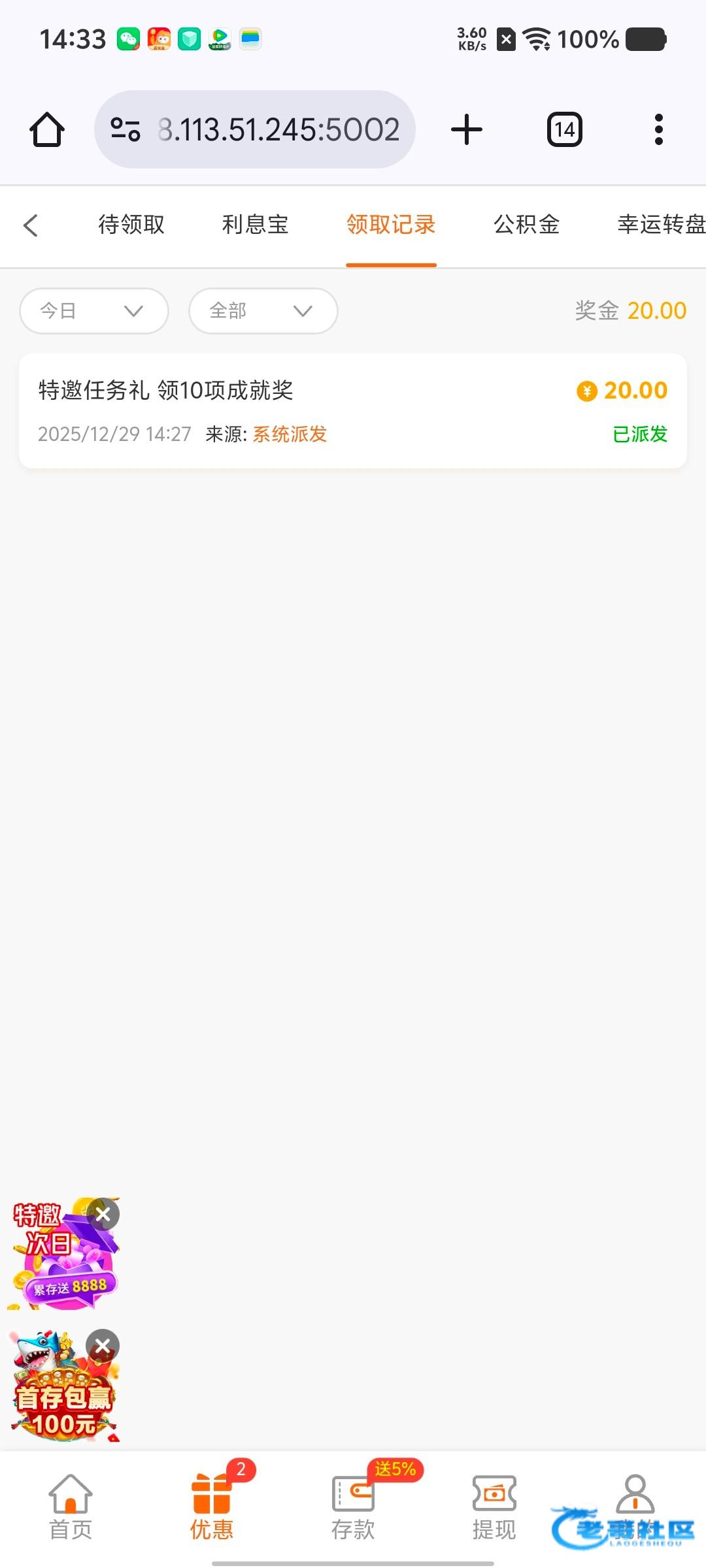 昨天收到的特邀,送了20,挂了充了100送了加起来50,提了300秒到,第二天又领了一个2 0