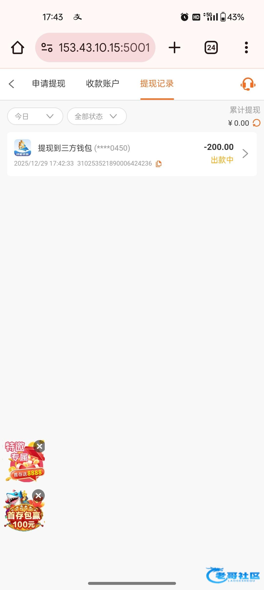 提现200显示要充值38 充了 不知道给不给出