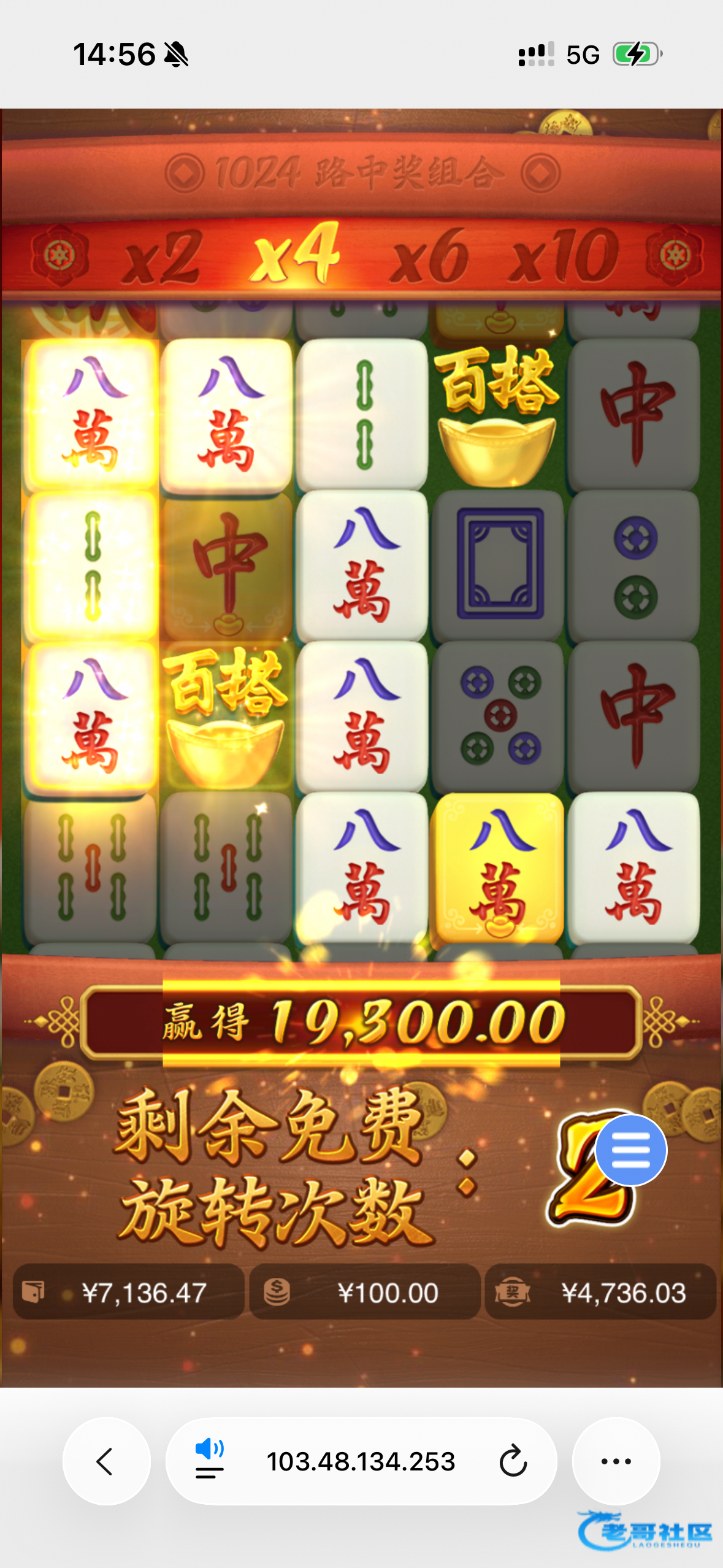 今天开始50-50的充,连输四五家,就开始200-500的上,还是一样洗白,就开始上2000,2k进麻将40一拉基本撑不过3分钟就洗白,共计输了1.4w,想着上最后2000再输就不玩了,进麻一40一拉,打到7k,想着还输7k不甘心,感觉没水了就去麻2和亡灵,都没水,还剩最后2k重回麻1,一直在2k-3k徘徊,想着都是死,不如死快点就加注,以为加到60结果加到100,吓我一跳,结果点第一下就进胡给了600倍,人生中第一次拉100给600倍的