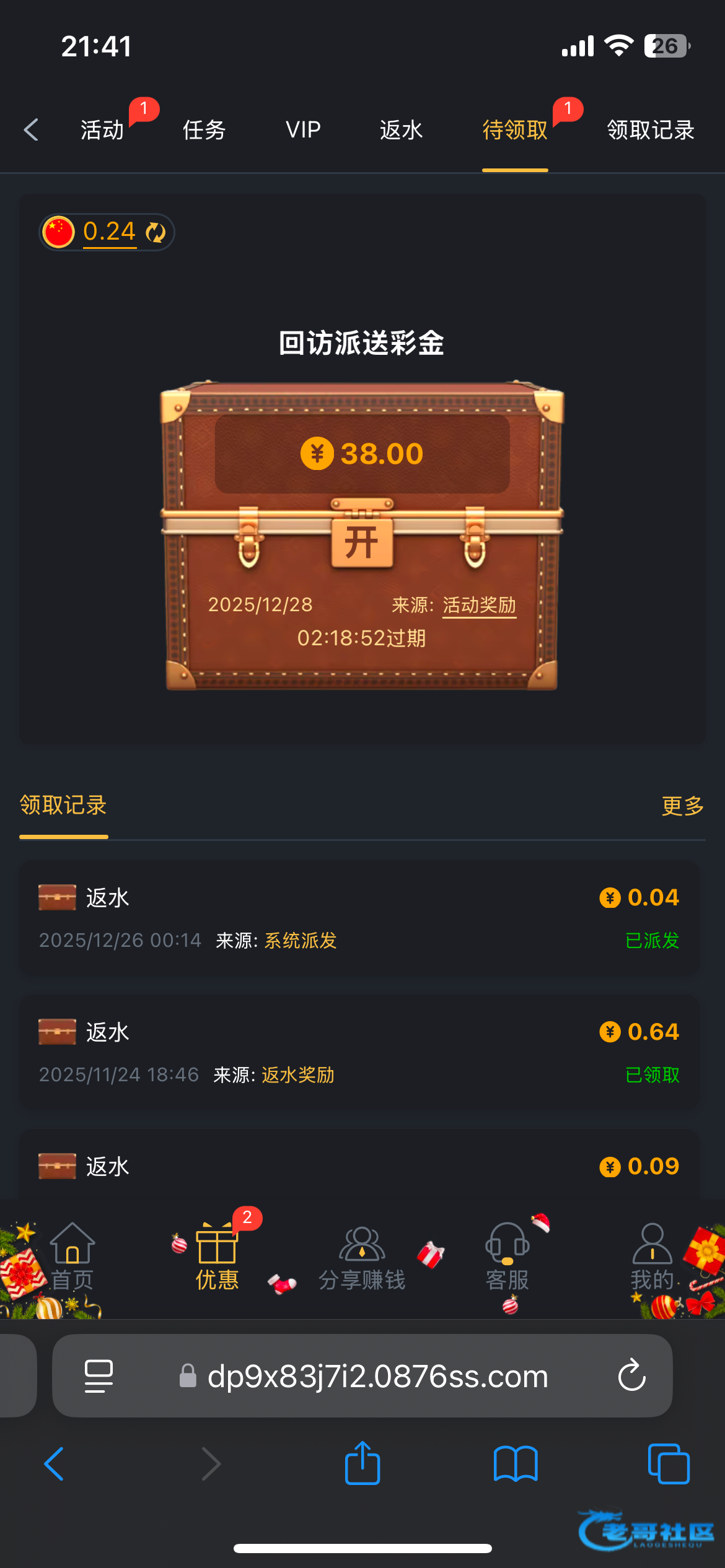 提了100 半个小时不到。。还是钱包。