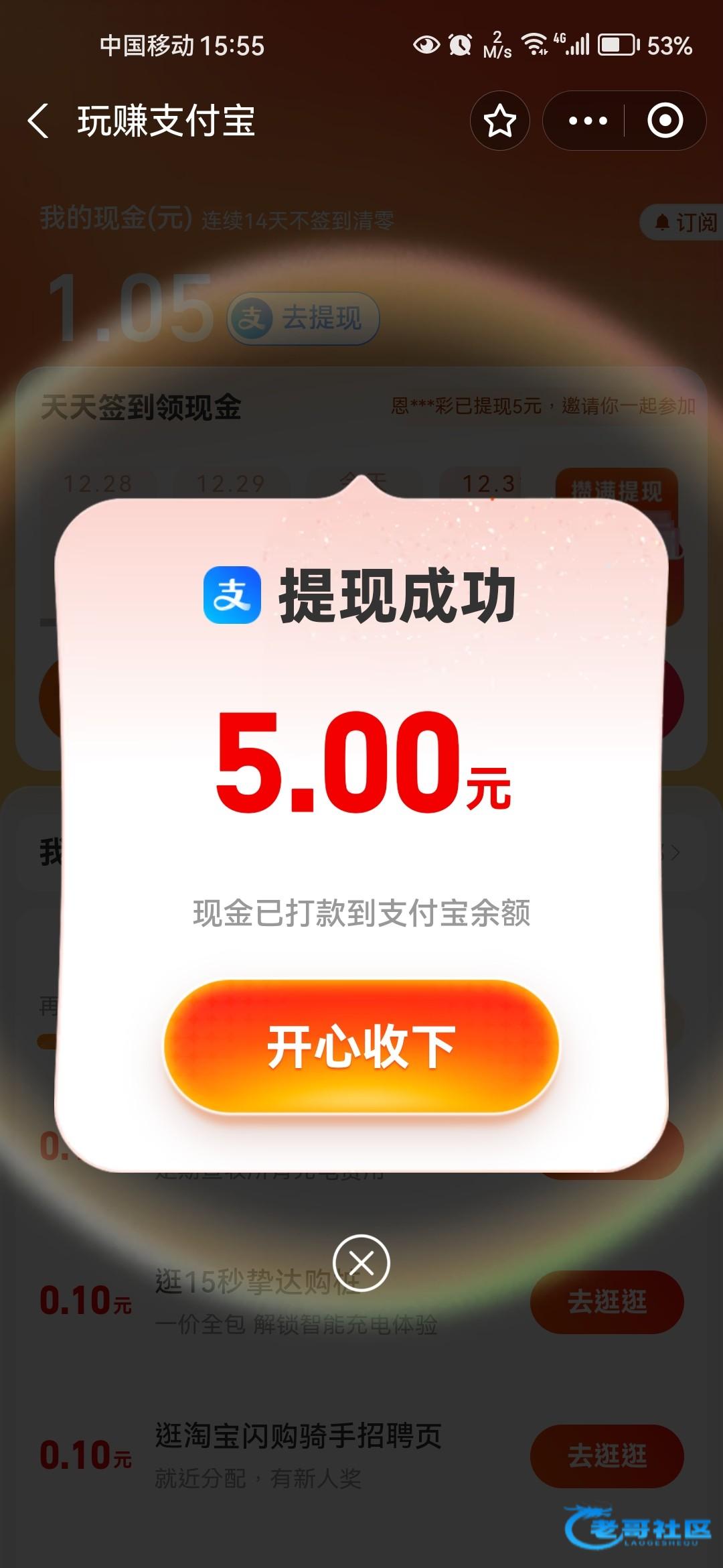 真有,领到五块