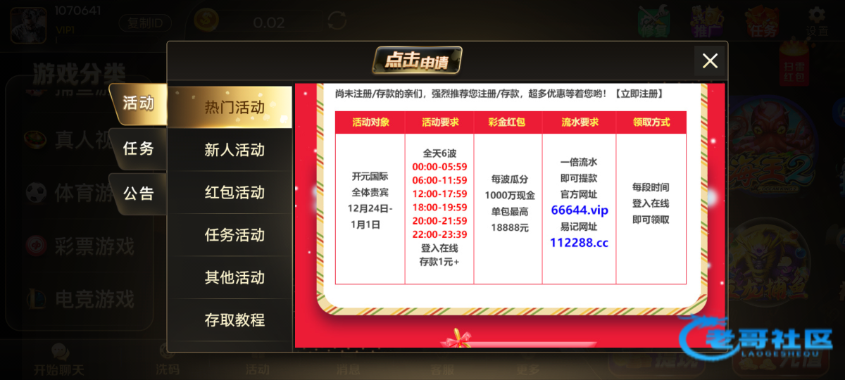 以前冲过,几个月没充了,昨天今天登陆都领了圣诞红包,网址0072.com开元国际