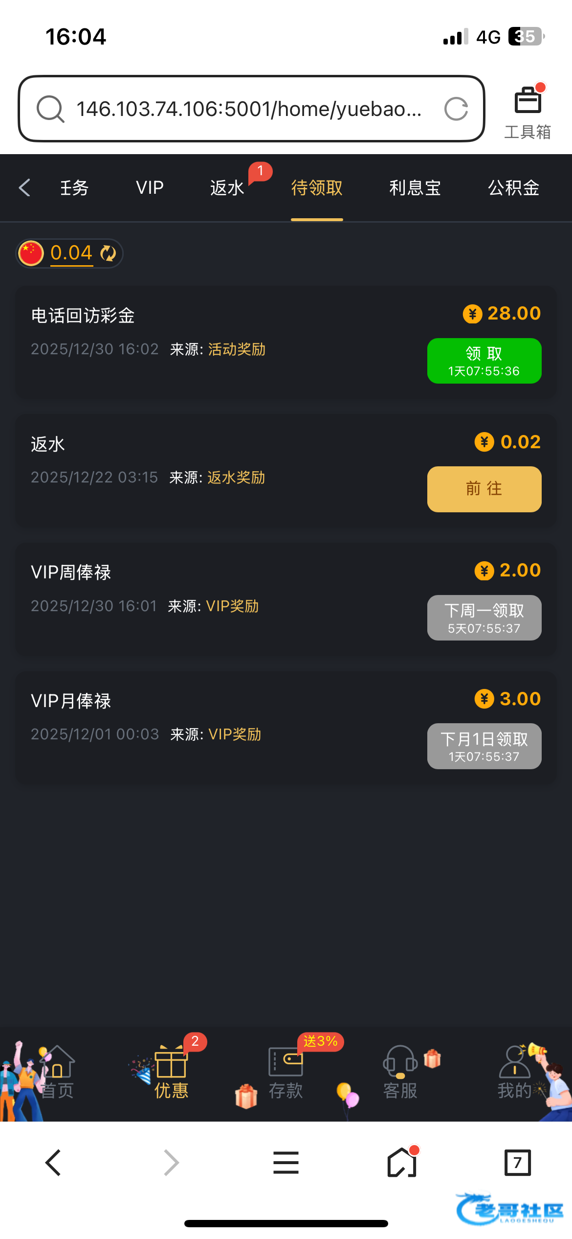 接到电话上线联系客服领取的,有充值过的,可以去碰下链接6367.com