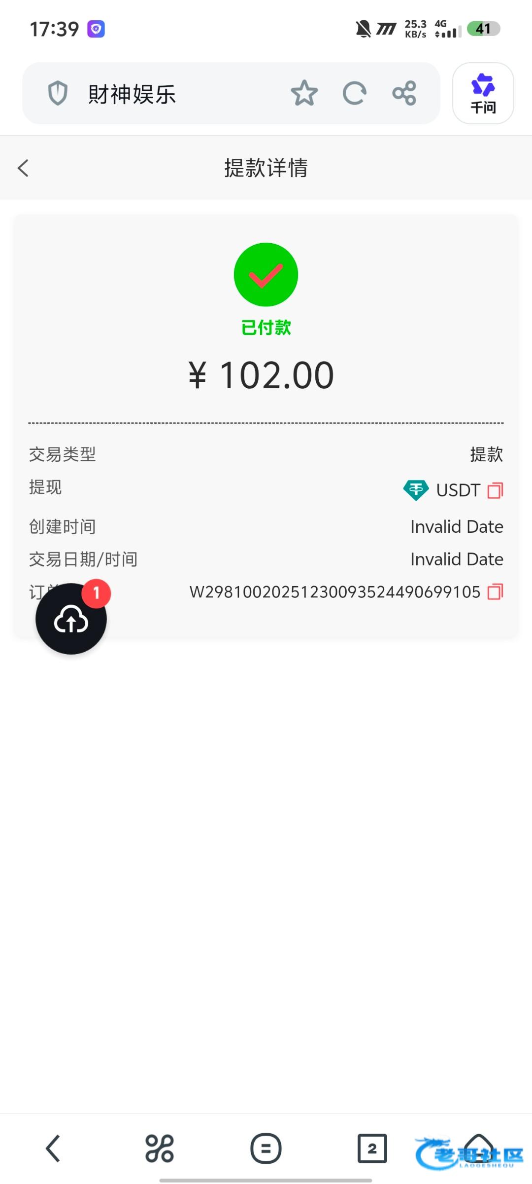 前几天上过了 那沙币差点带输我了 得吃102 提u拒绝了 然后提的银行卡