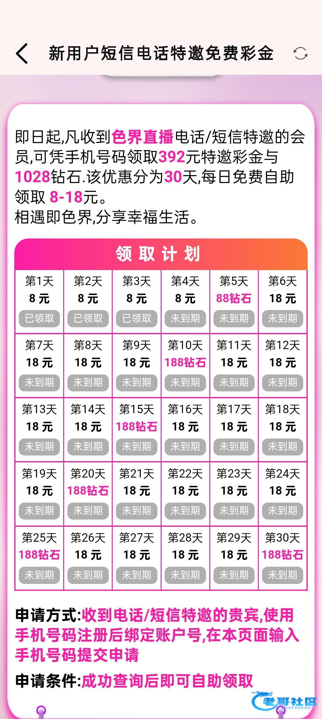1色界短信特邀。活动里面自助或者弹窗 看到短信注册的(这个大概率能白嫖到)送一个月我是目前领了第三天后面要不要充值不清楚。vx888.com (短信网址找了半天找不到了)(严谨充值)(纯分享 白嫖不到勿骂人)