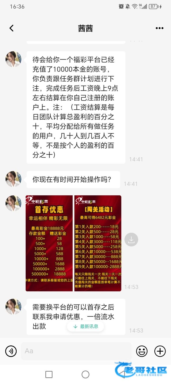 微信小程序小游戏里面看广告有很多招打字员之类的广告 点进去就能聊天 这种基本都是彩票工资车 没刷到这种广告就多换几个广告看就有