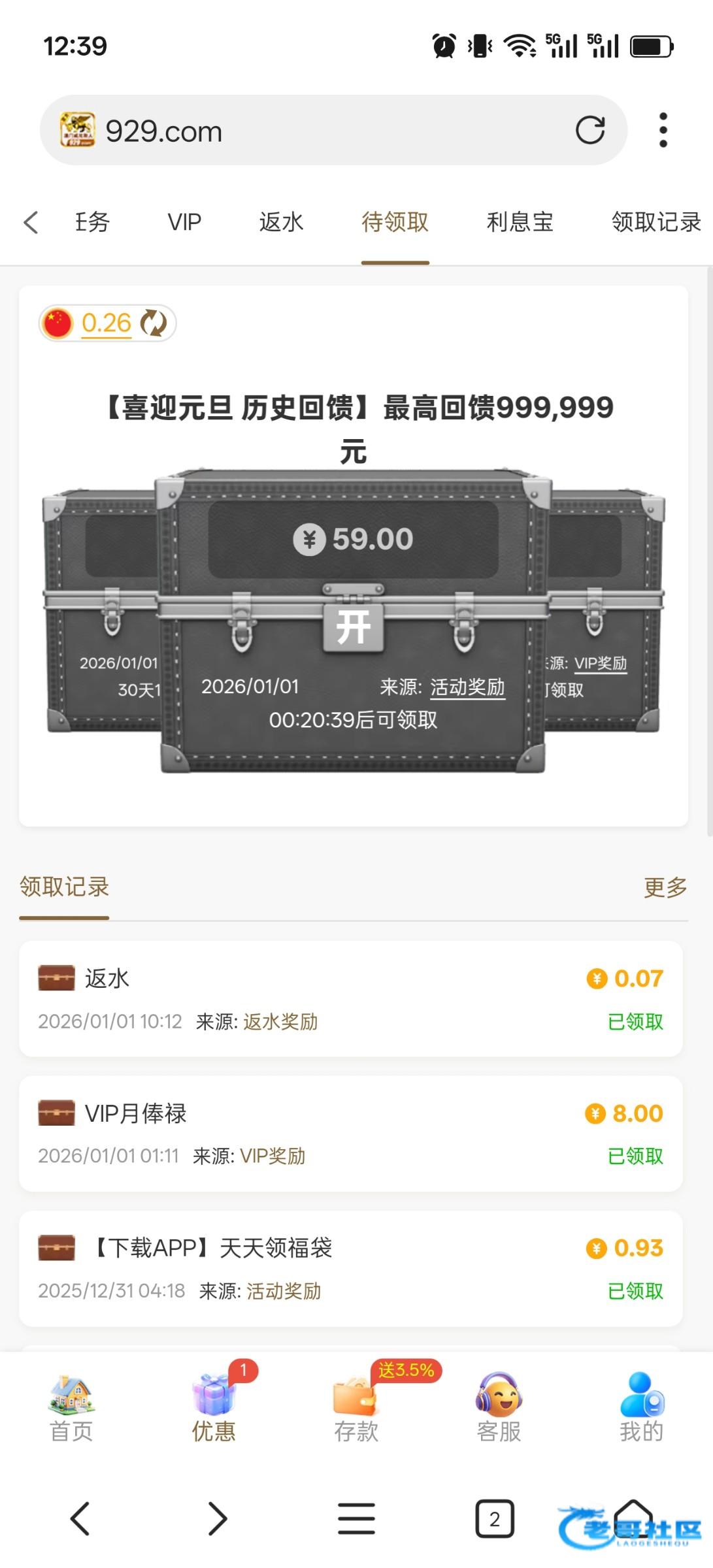 之前老哥推过的台子,有冲过的下午1点登录领取就行链接929.com