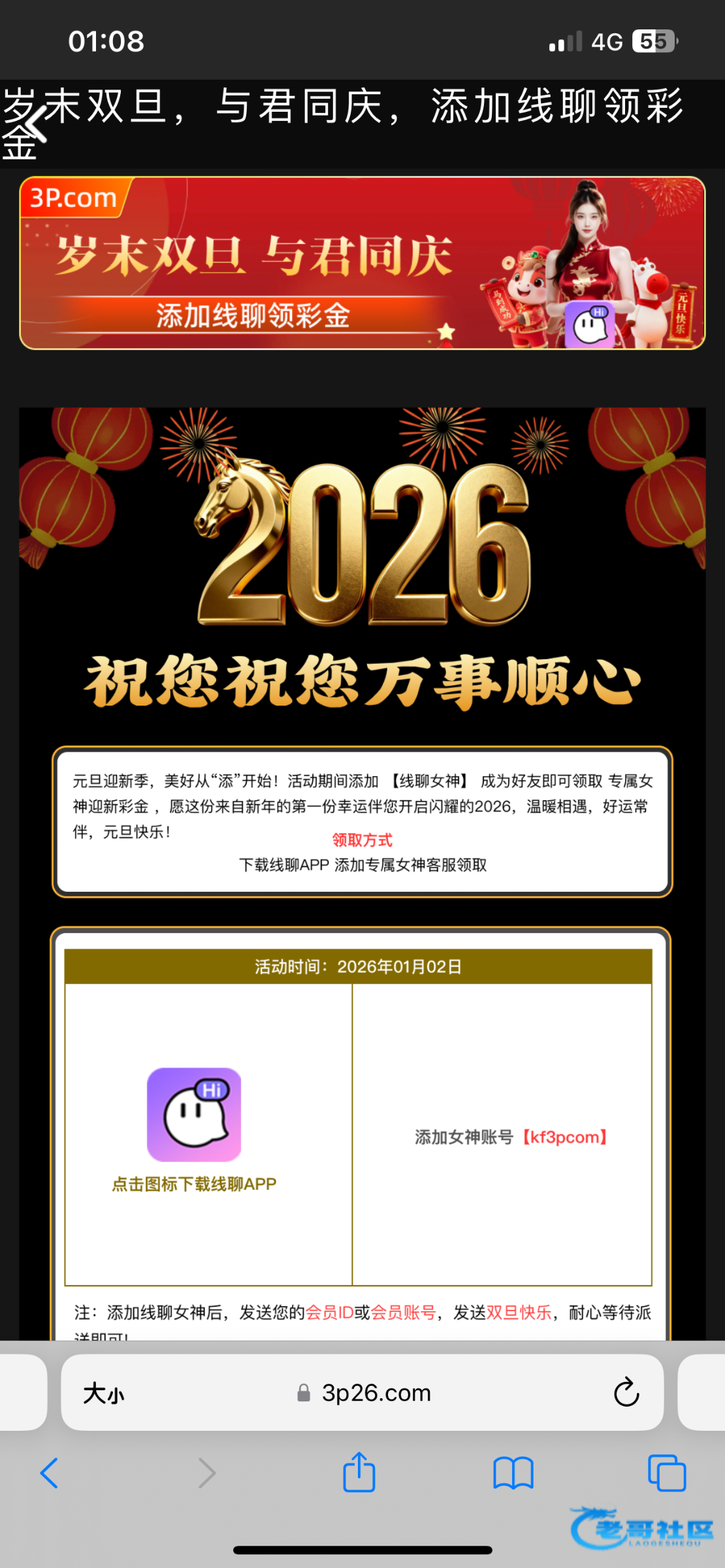 3p棋牌元旦添加线聊女神送元旦彩金,我送了38前几年充值玩过了,网址3p26.com 线聊下载链接https://xianliao.app