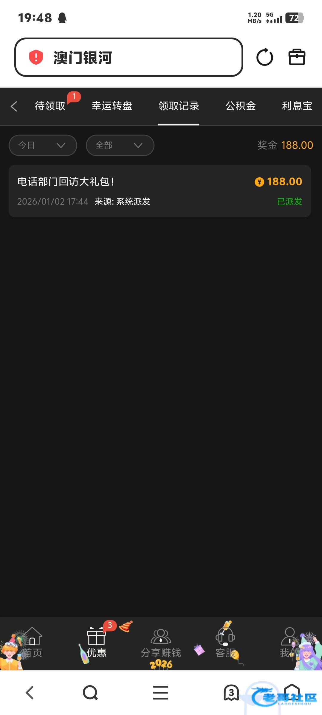 网址3016.com 以前存过几万没送过一次 等了一年多送了这一次 有号的上去看看。有就有没有就没有