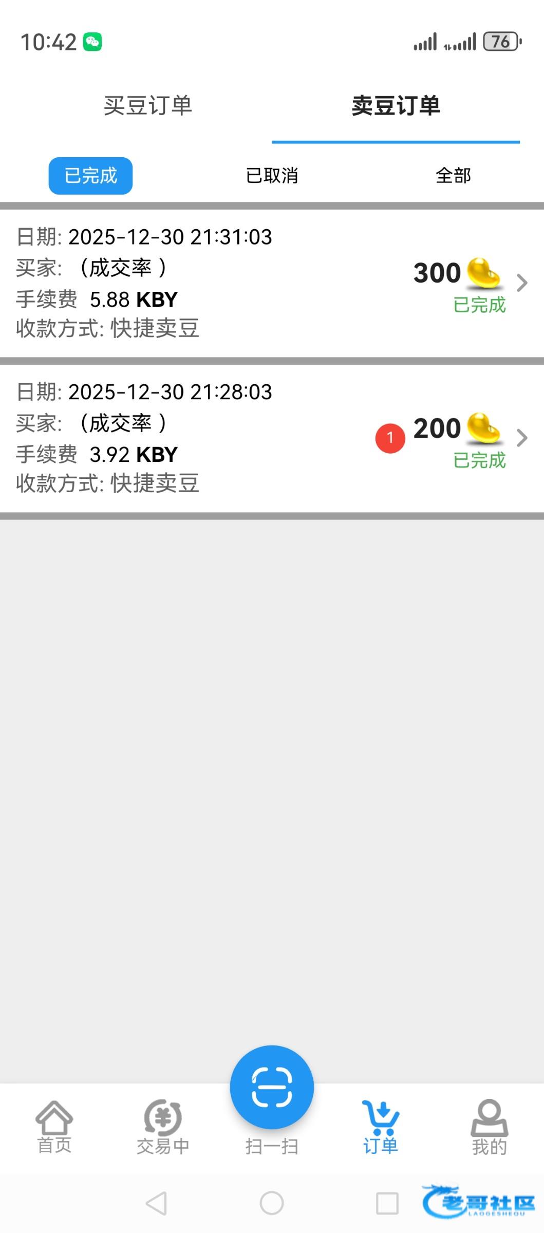 提交卖豆订单以后才有