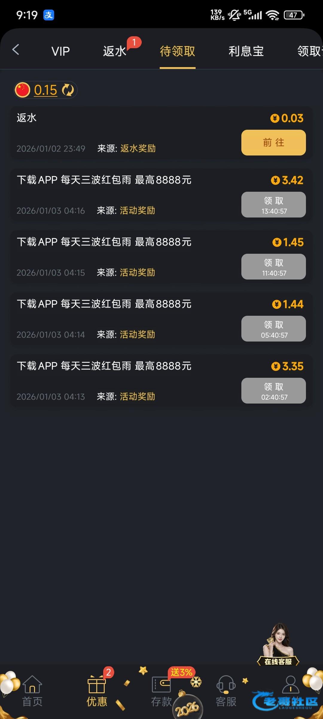 你充值了你怎么不讲?我去问了客服,明明说要充值了才有,不充值都别去了,没有