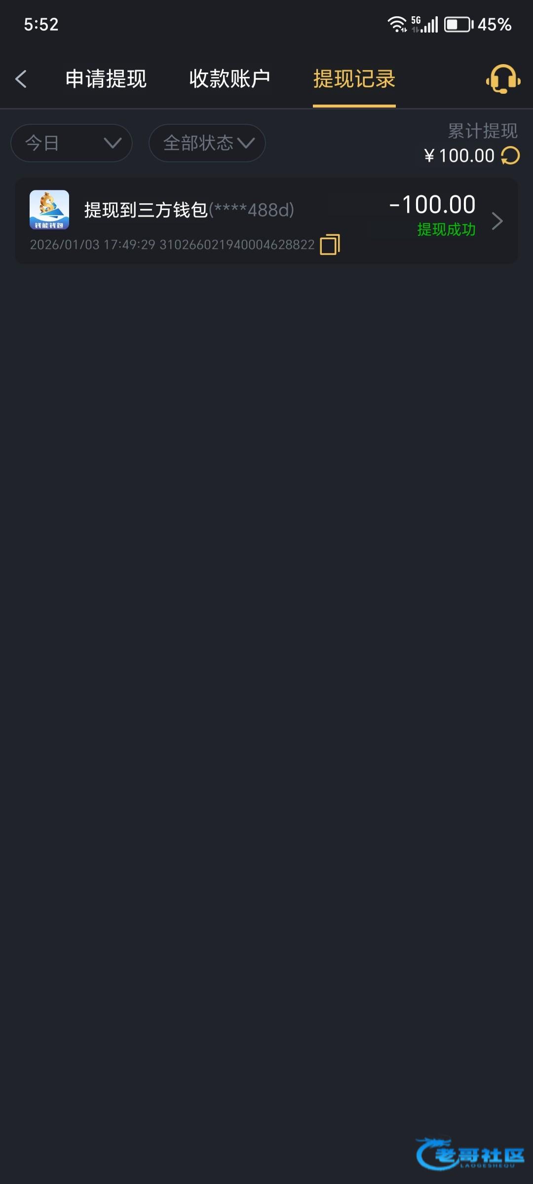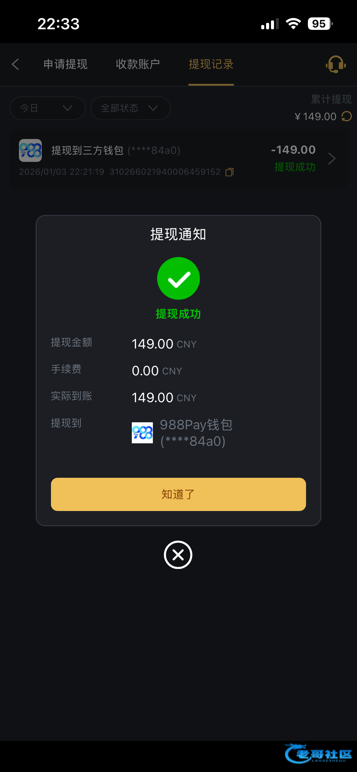 提现冻结账号