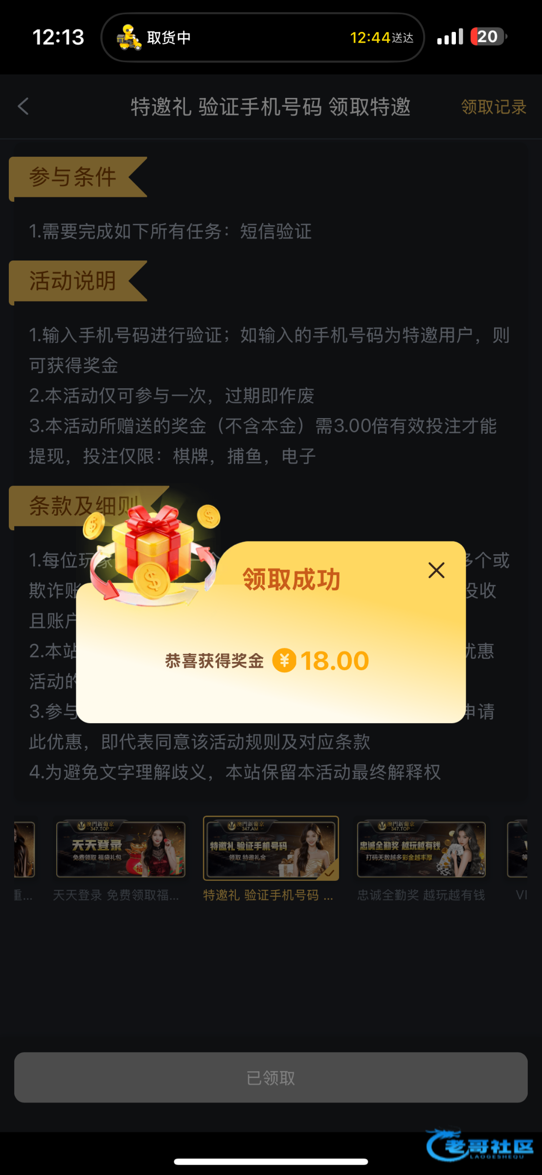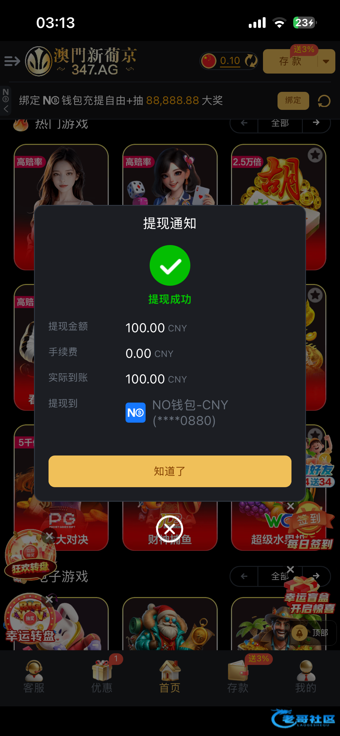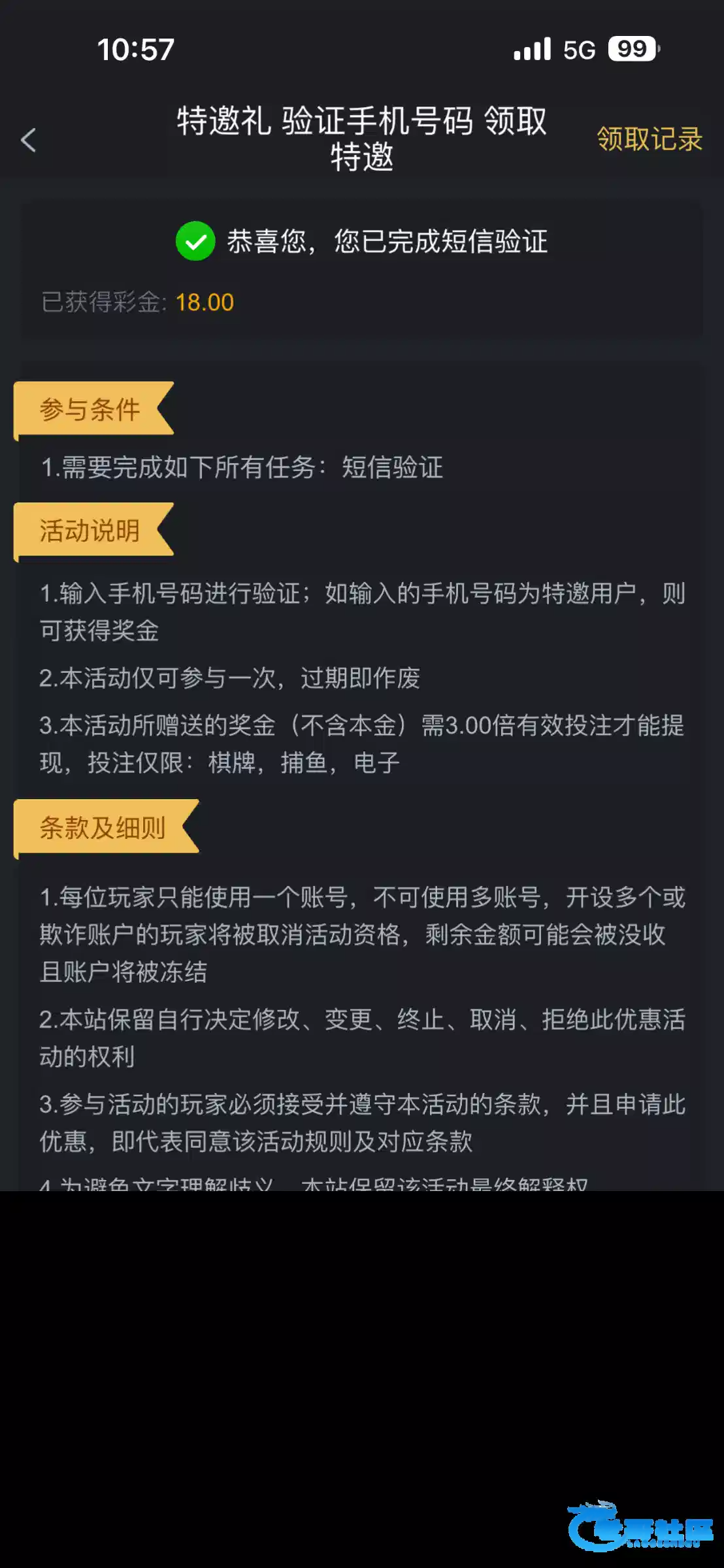 垃圾,领18输了,充100送58打了250流水,然后反水进洞给两块