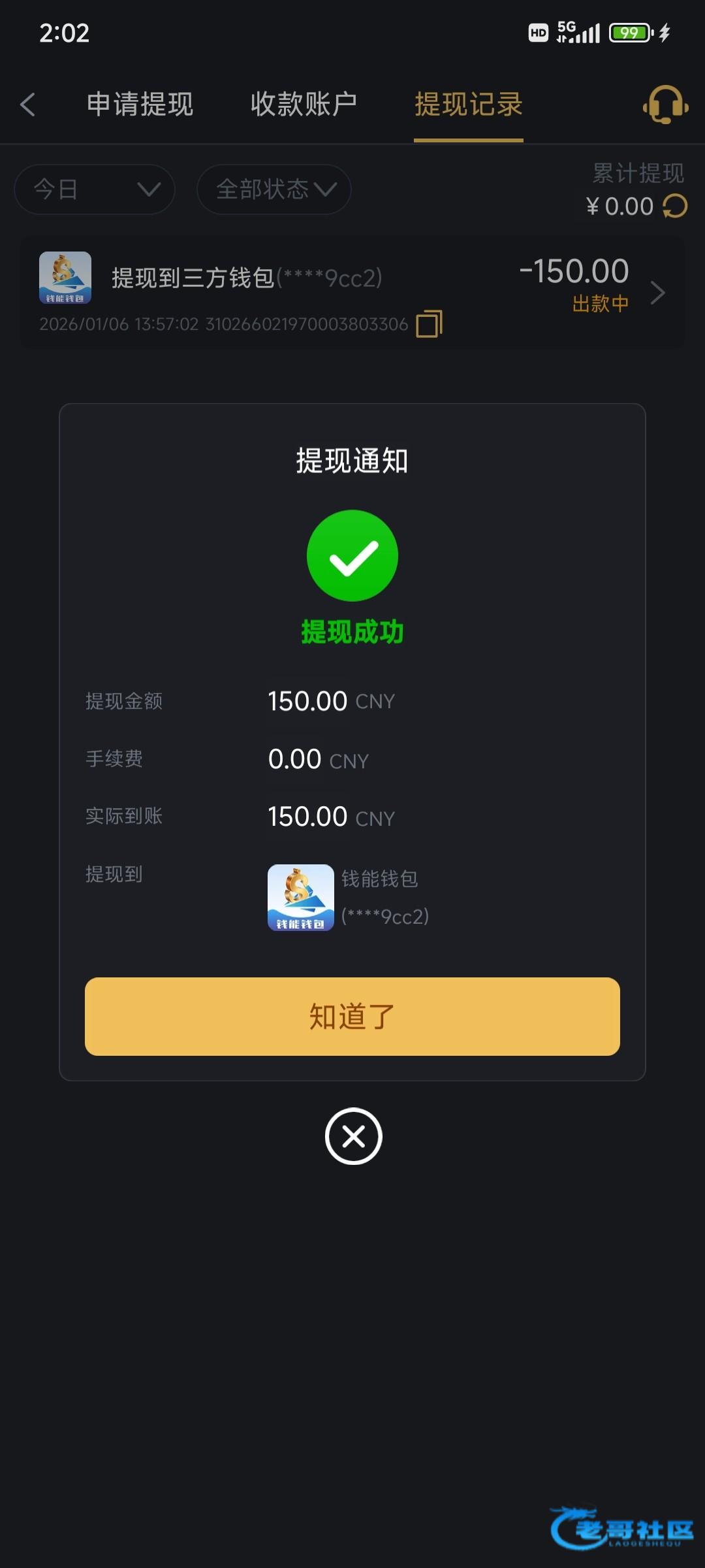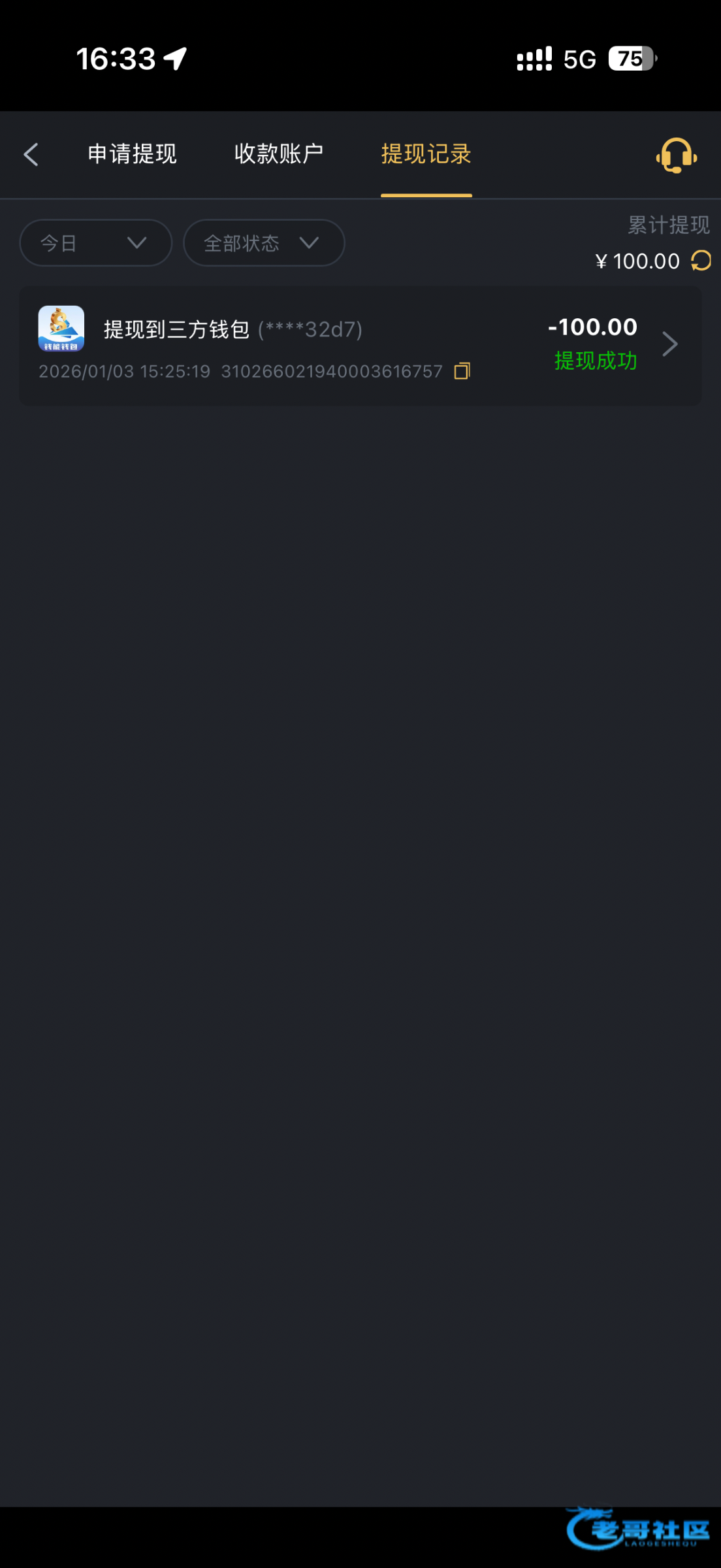 提现冻结