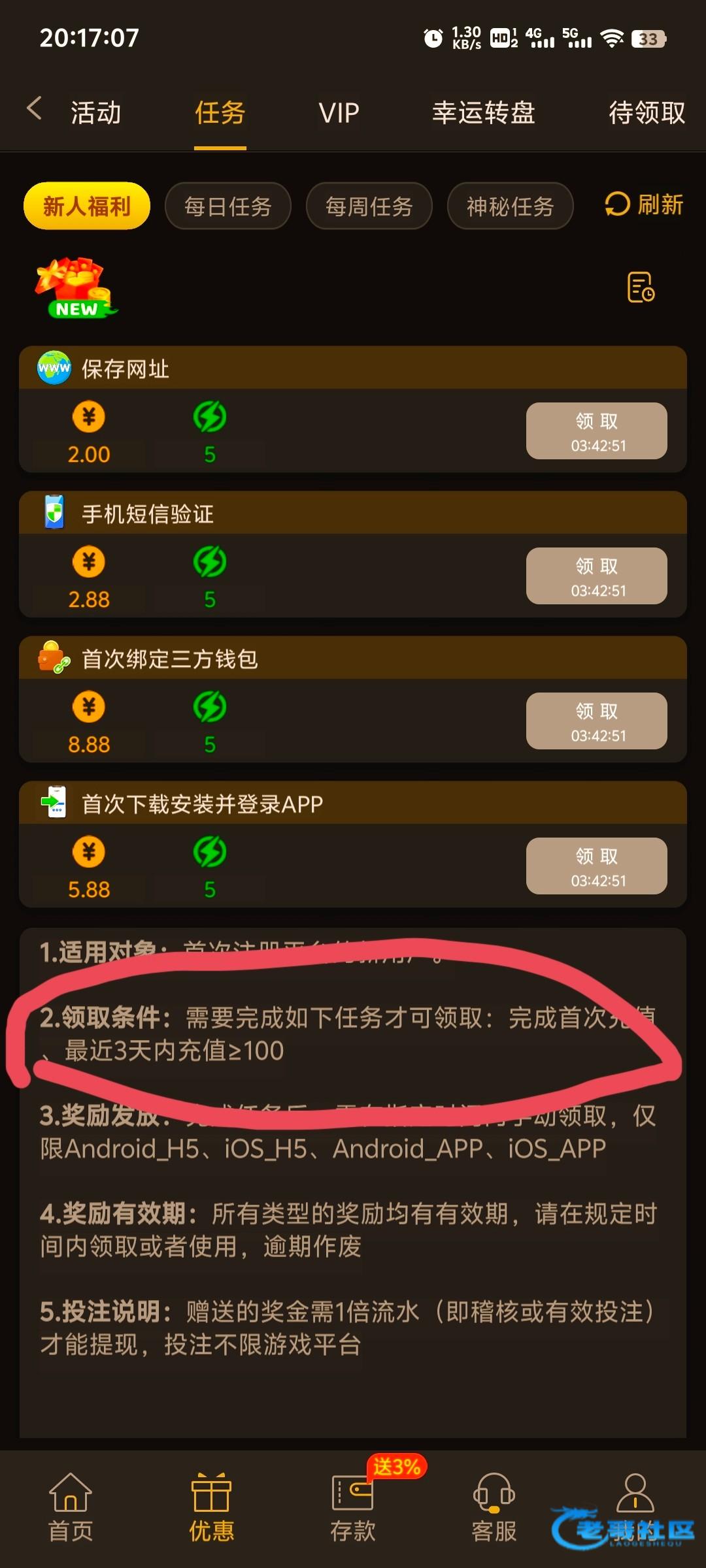 需要最近3天充值一百才能领取!