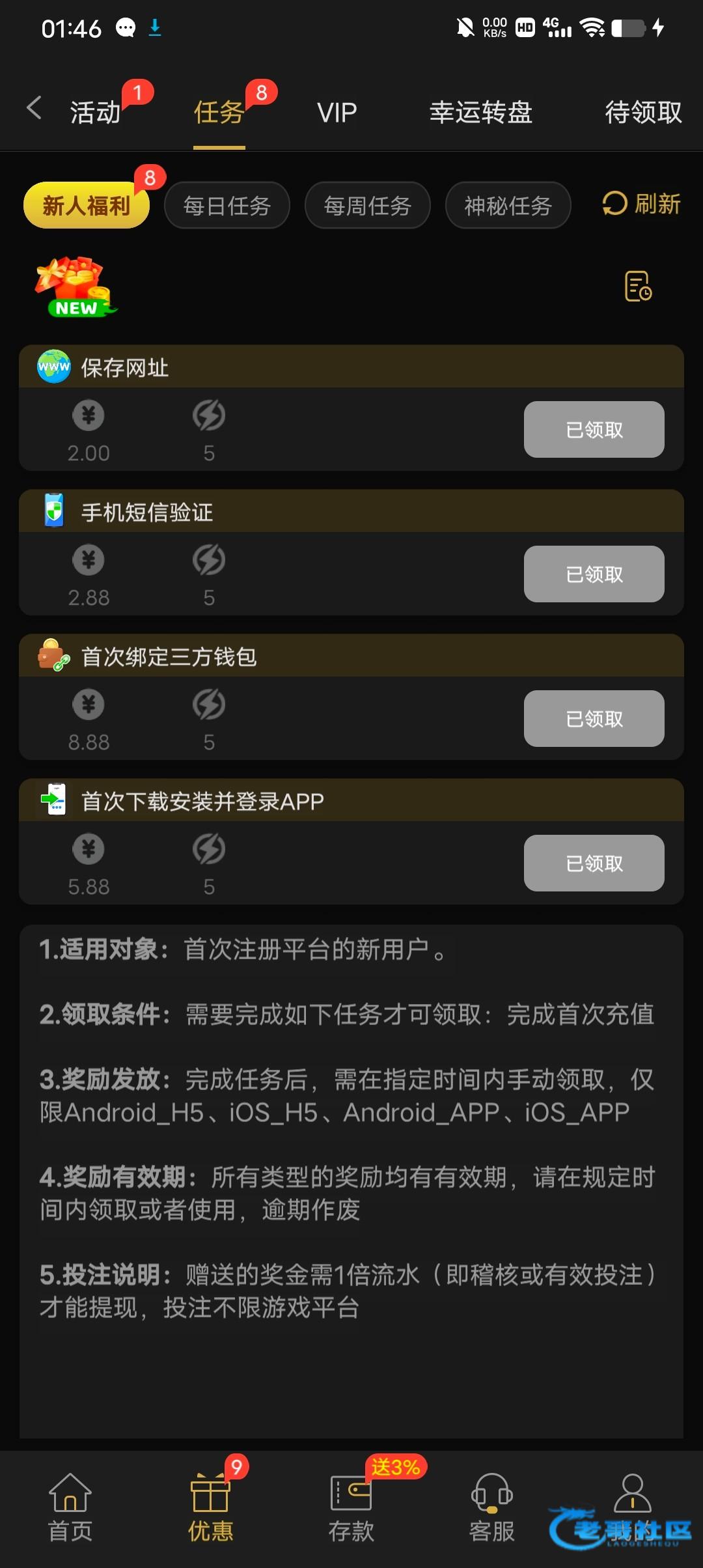 暂时不黑任务彩金要第二天才能领取,自己看 789.vip