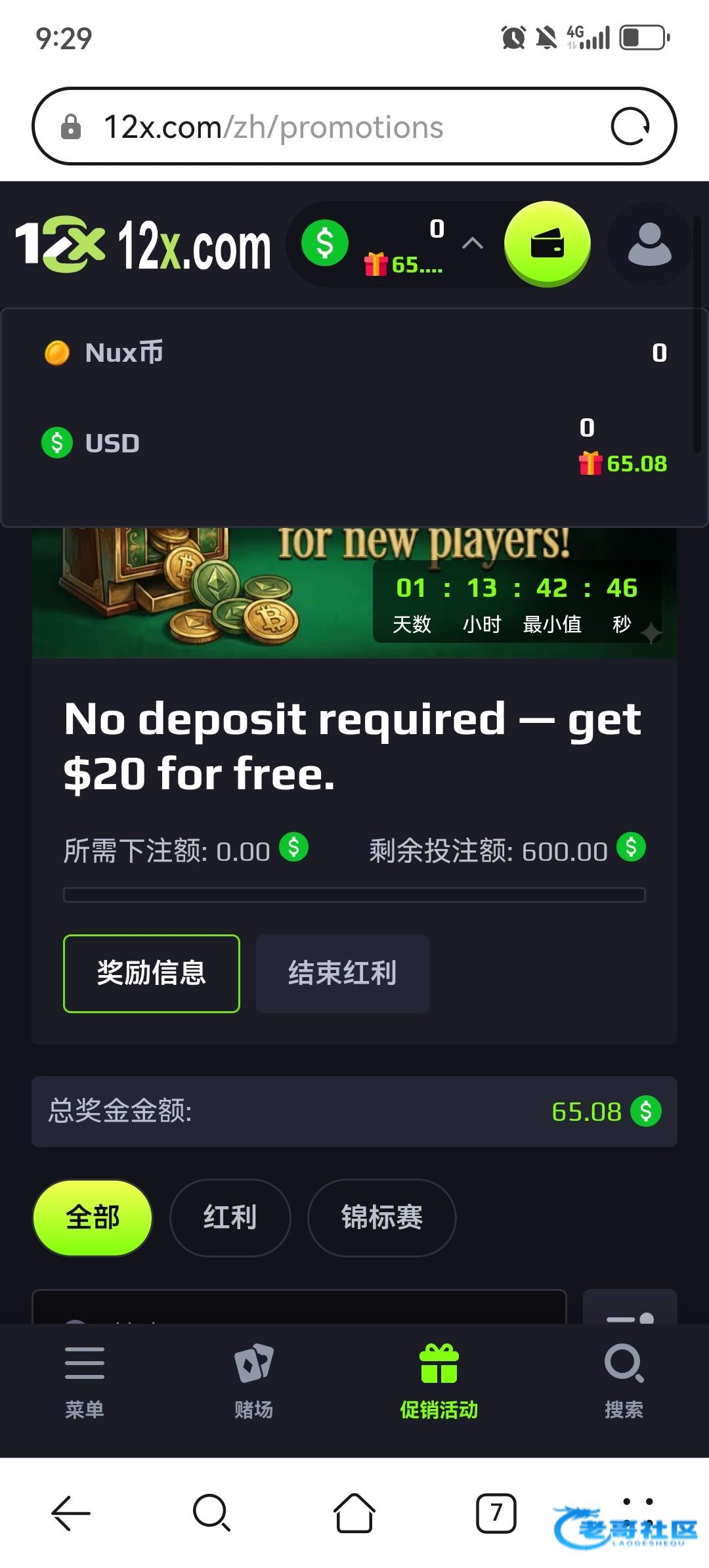 告诉你们个吃肉的办法,打流水的时候藏几个免费(因为他这个600u流水一够直接扣除余额给你20u让你在打一倍水的)所以你们免费藏着,等那个20u到账了去拉完再去开免费就可以直接提了