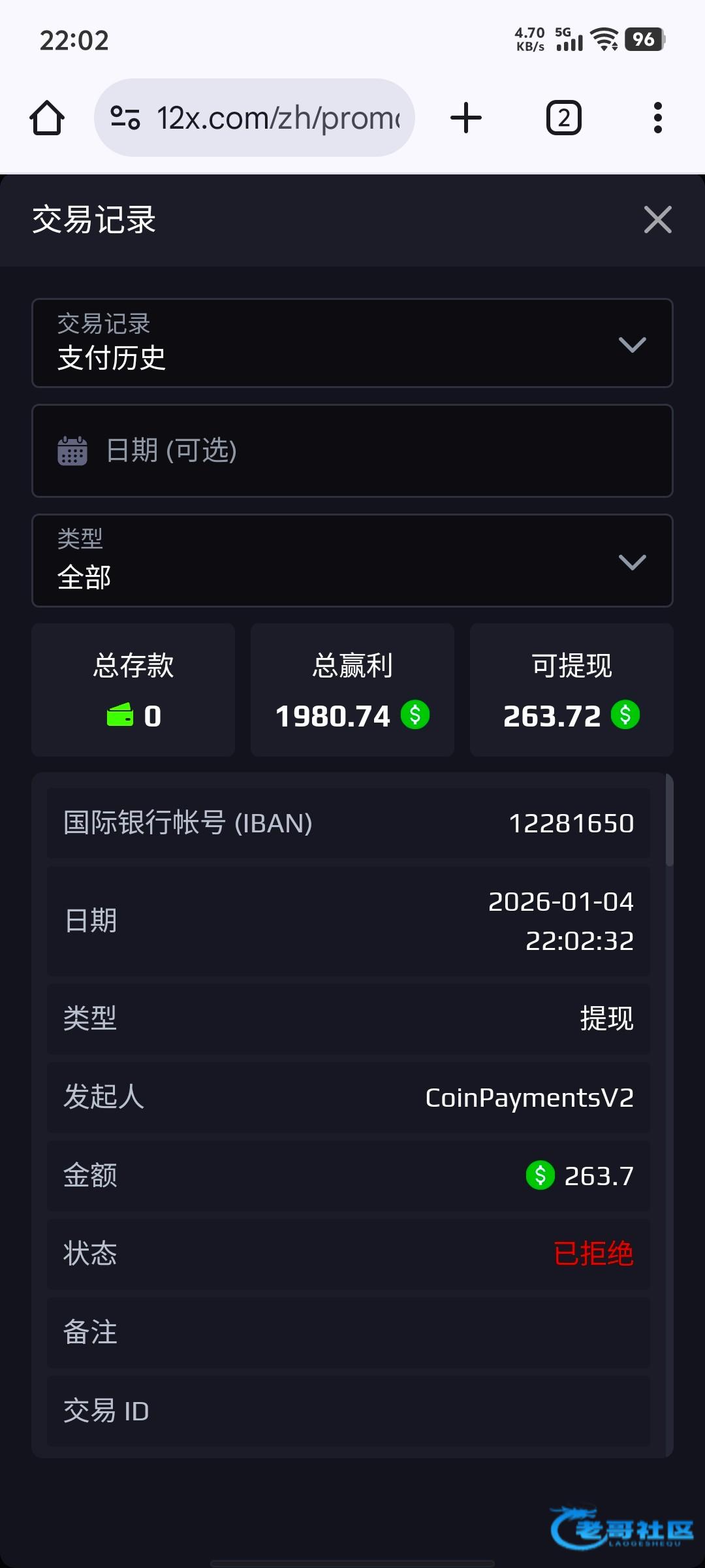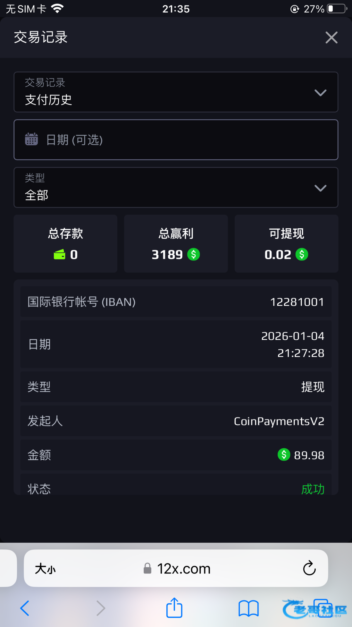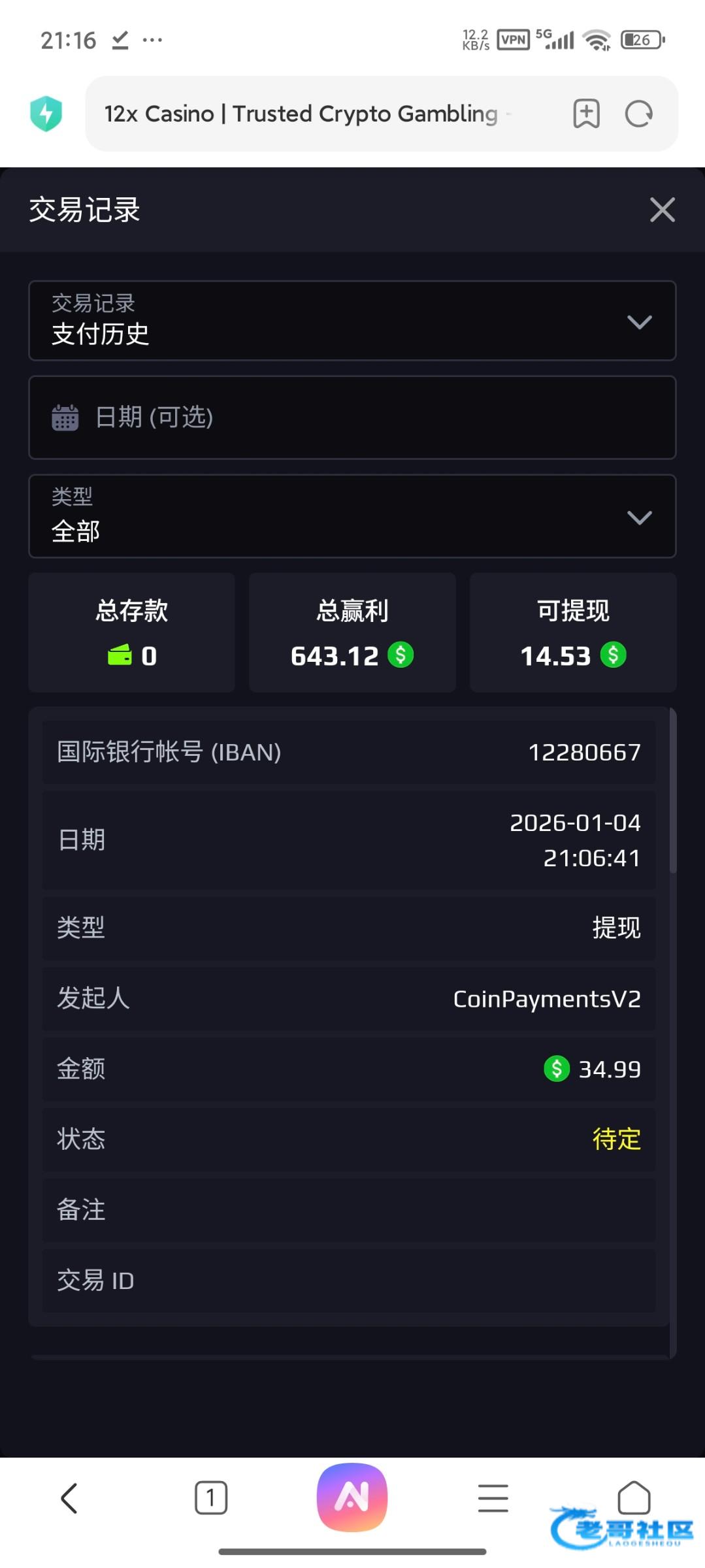 pys2007 ▶ h20030929 显示提现成功实际上也不会到账 2月前