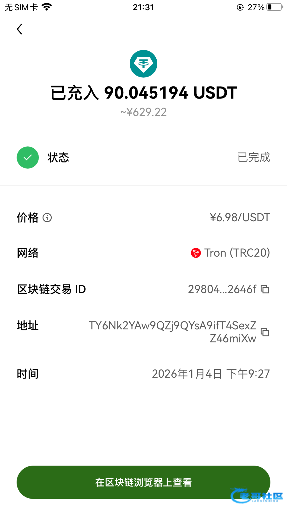 Trc20显示到账实际上没给我