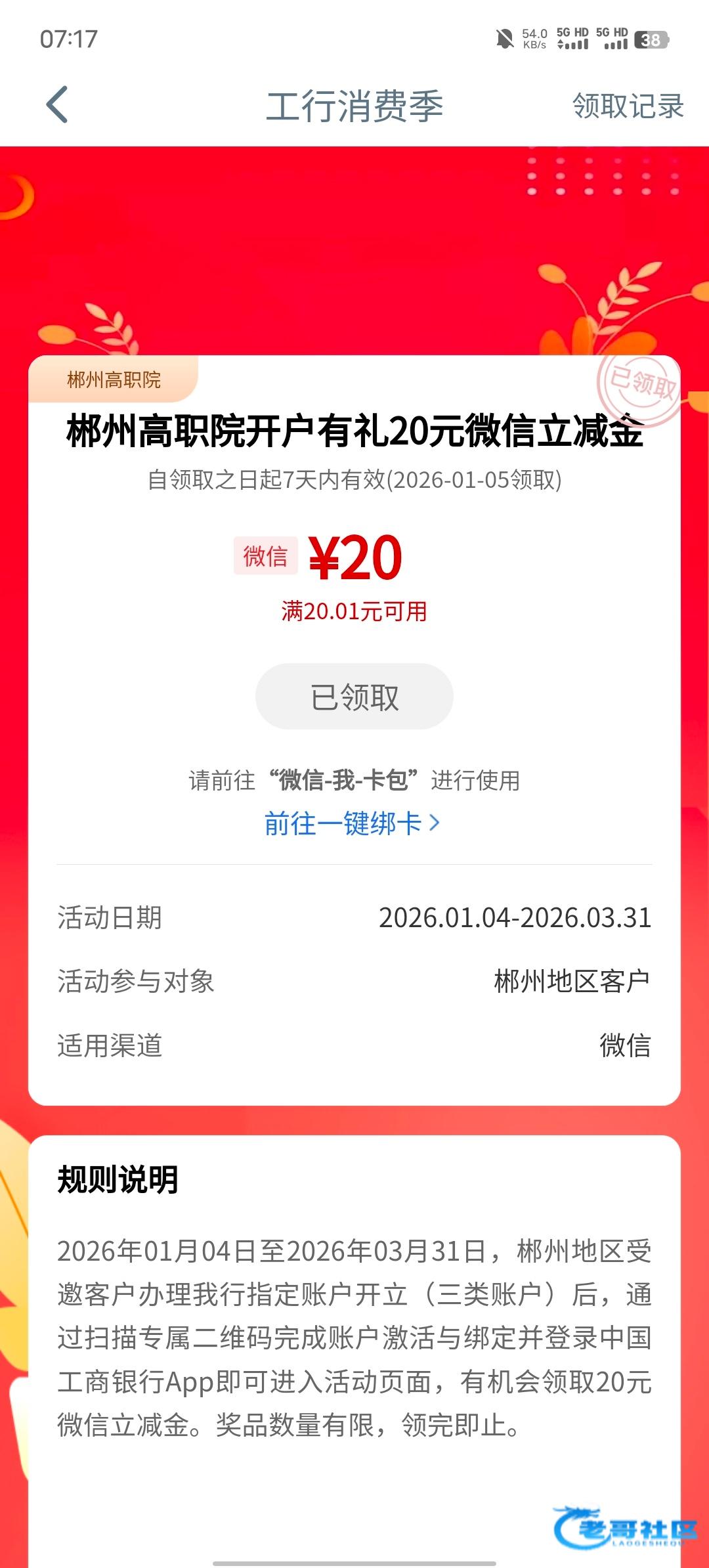 ⑤打开工商银行登录,搜索消费季 页面直接领取20立减金。