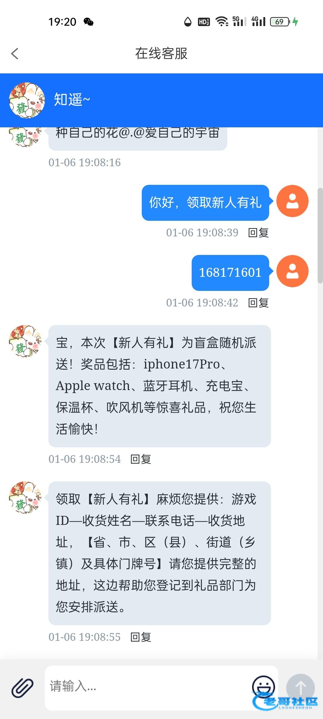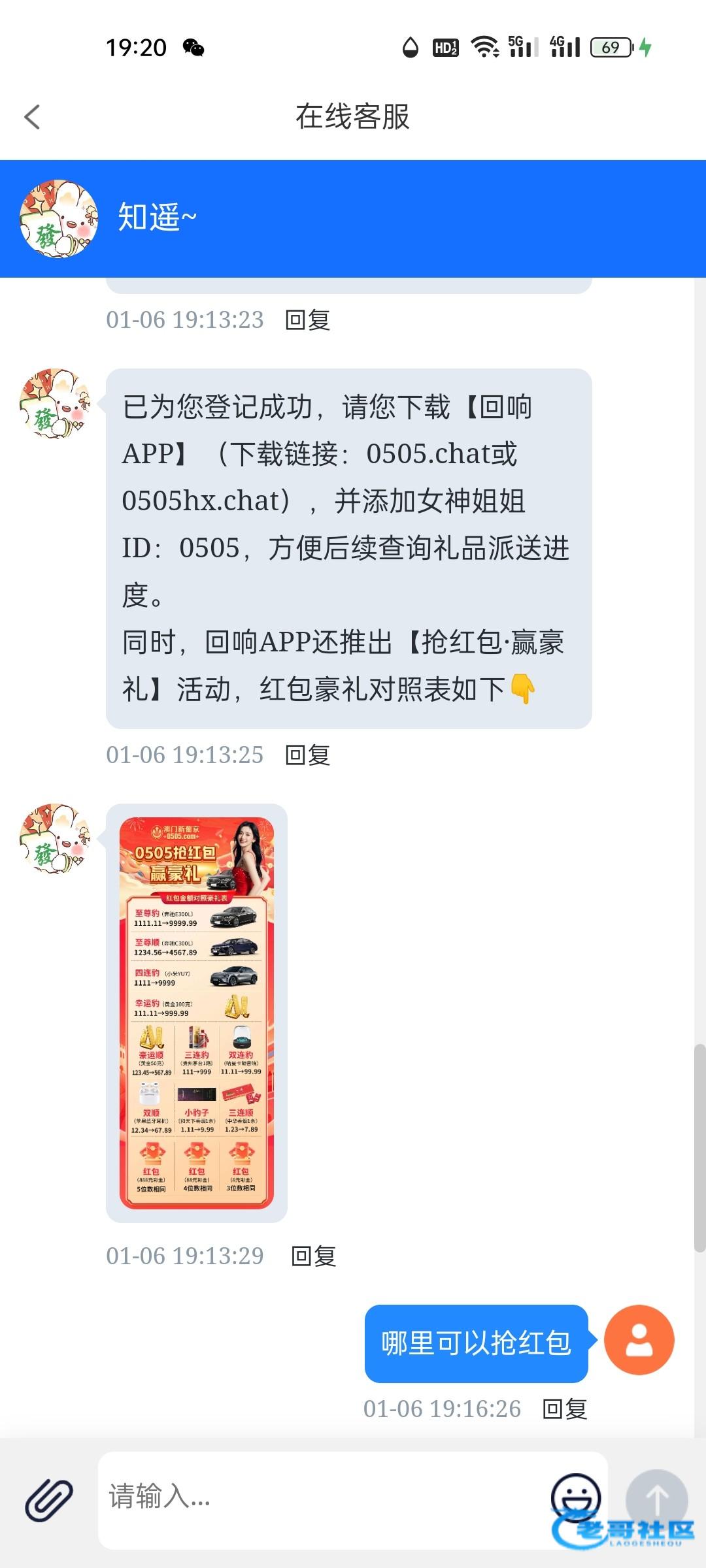 昨天发的0505,相信很多老哥都回充过,可以找在线客服领新人有礼,都是实物,没有彩金。白嫖的不拿白不拿。网址0505.com
