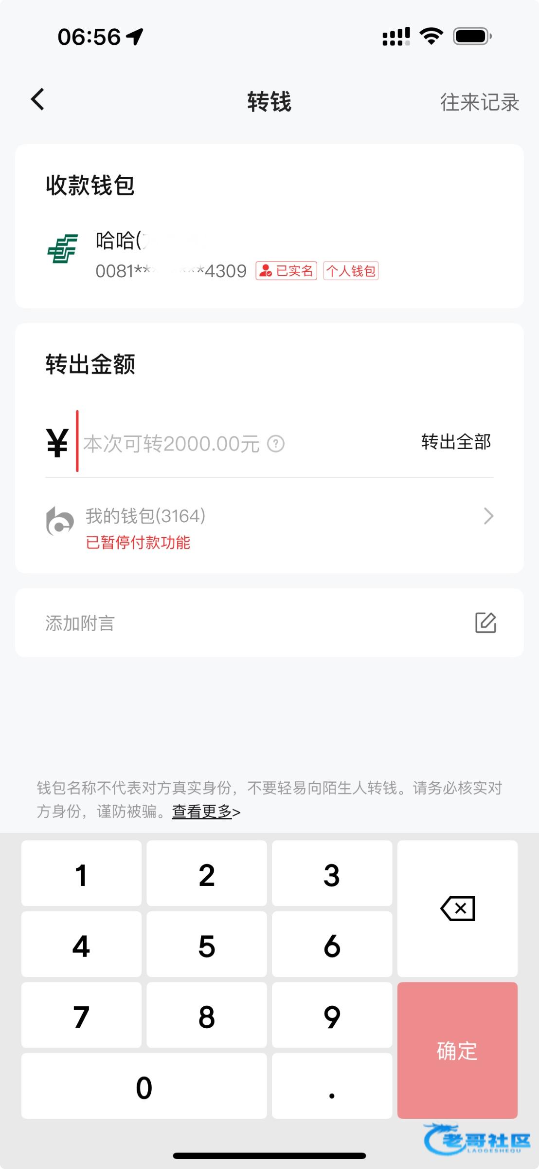 他这是能转的 只是不能用现在这个钱包存银行而已 我又不是没遇到过 换个钱包就可以存银行卡了