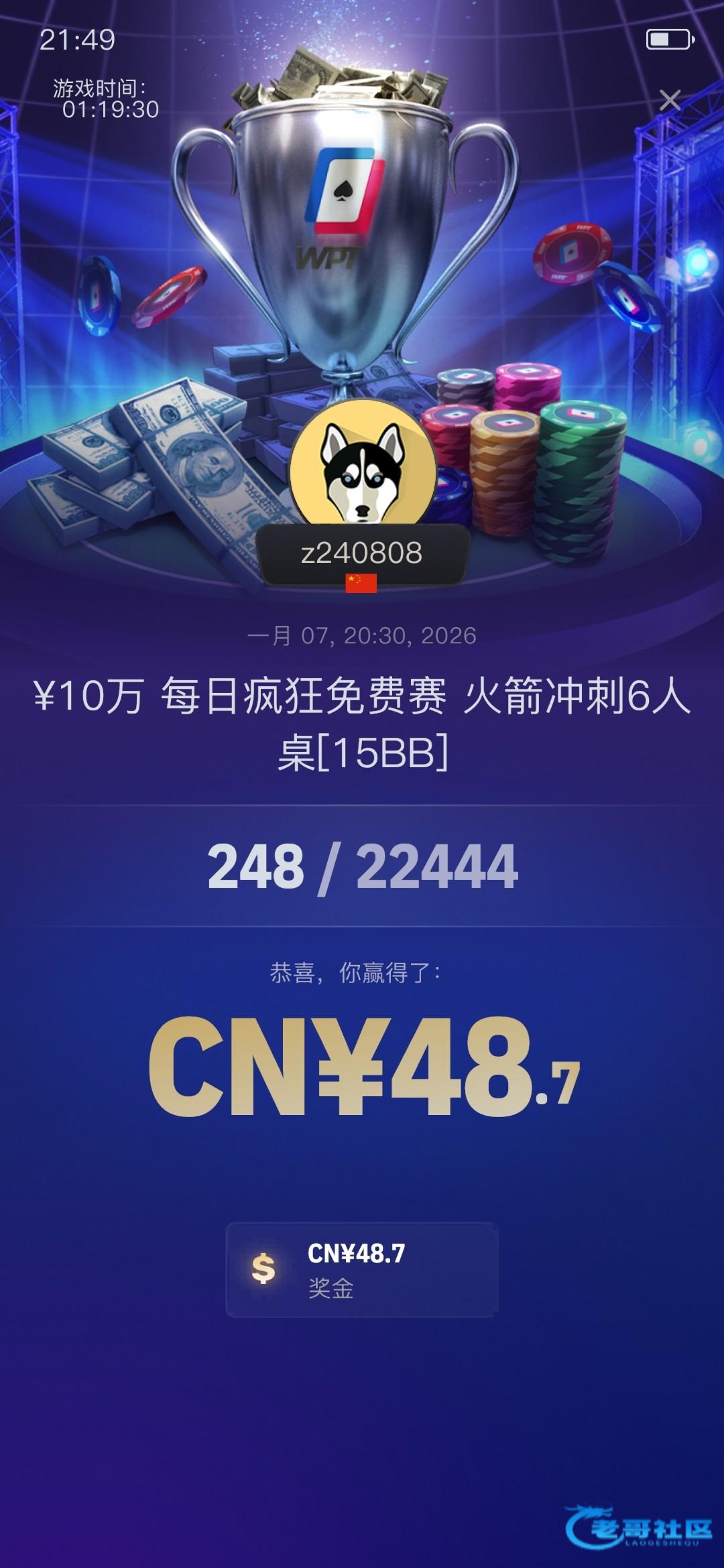 wohaoniu ▶ 阴雨天 一看会不会掌握节奏,二看发牌,运气好且把握得住,钱圈不难进,前一千名和前十名不是一个档次的[em_14] 2月前