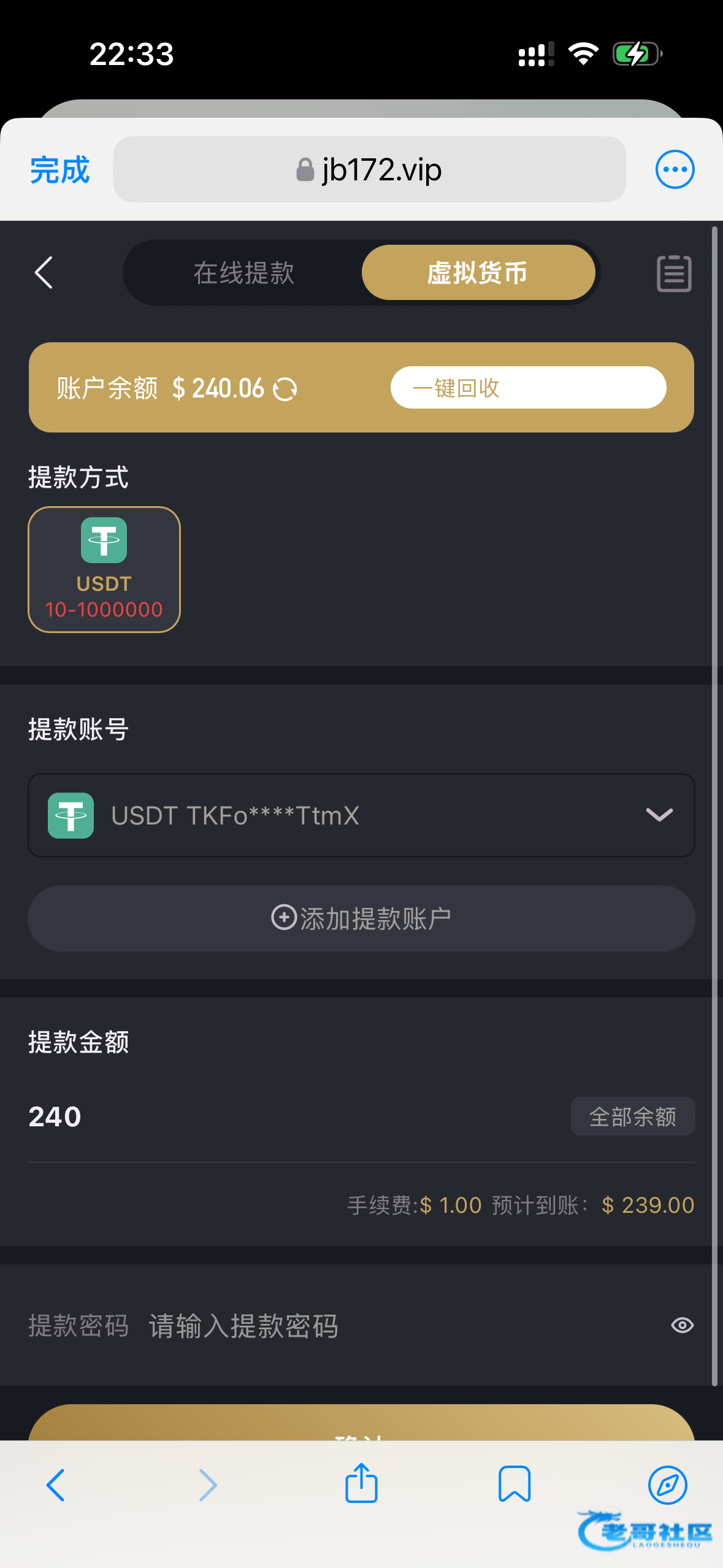 这是金贝3我撸过,提款需要充值同等金额然后再刷一倍水,充u提u,充汇旺提汇旺,