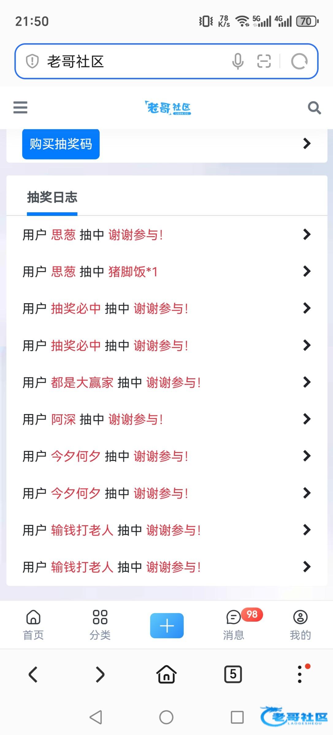 抽奖终于中一次