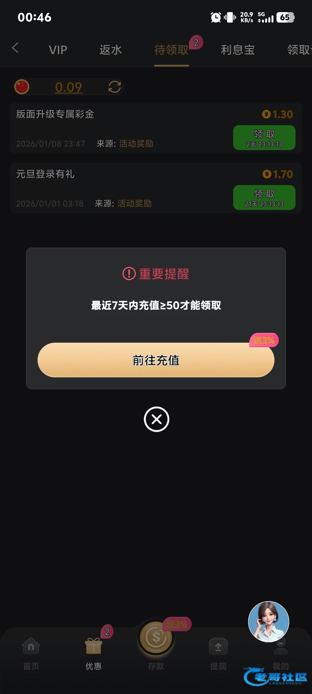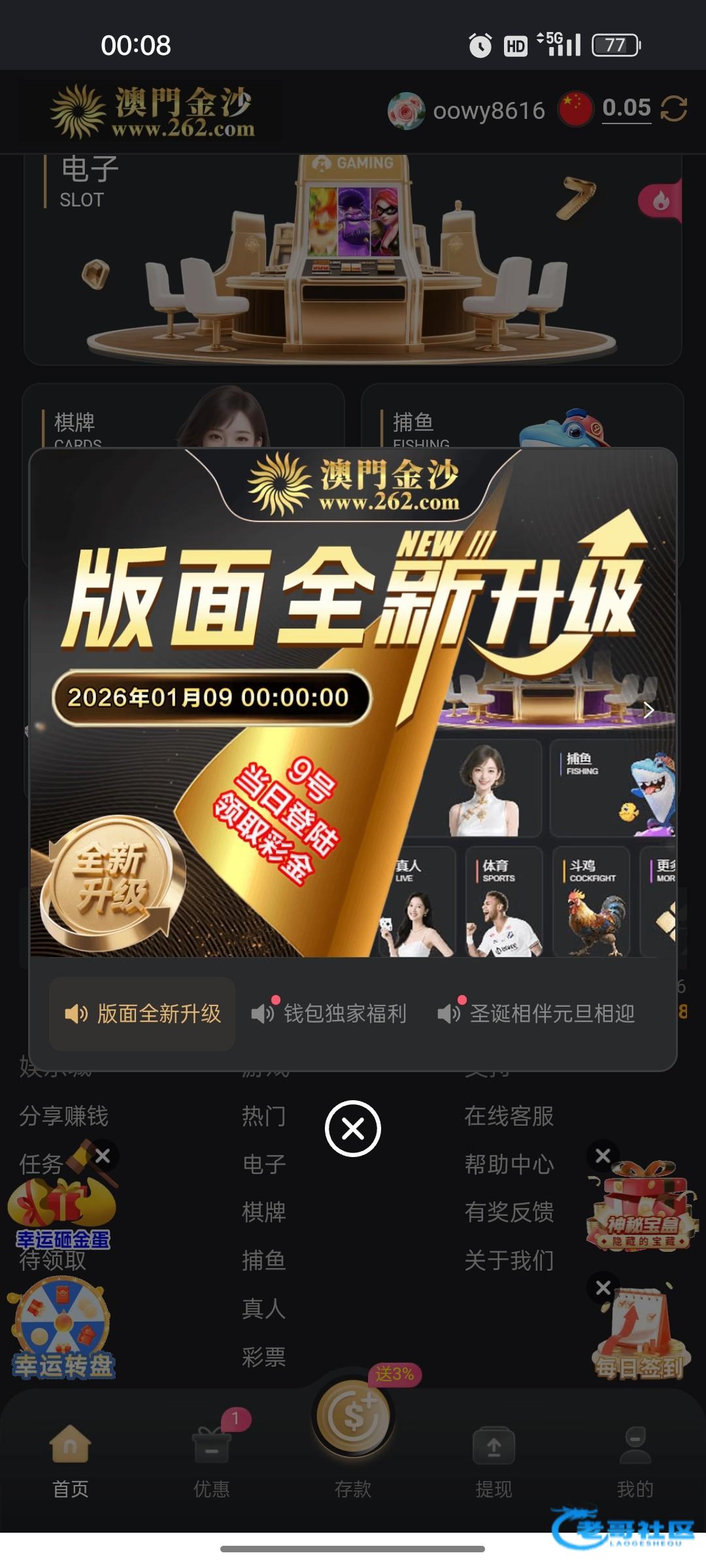 登录进去有弹窗显示升级彩金,还没派发到账,大家等一下