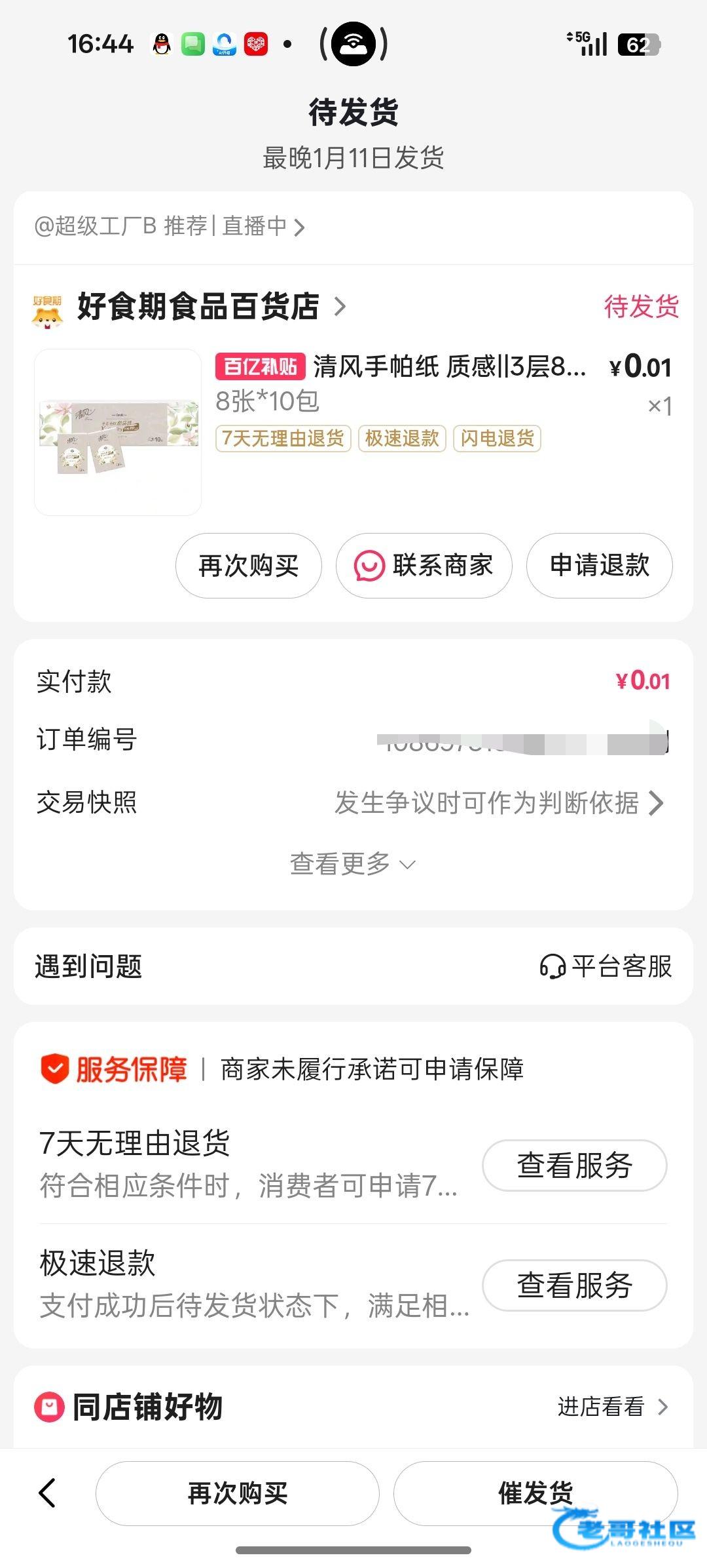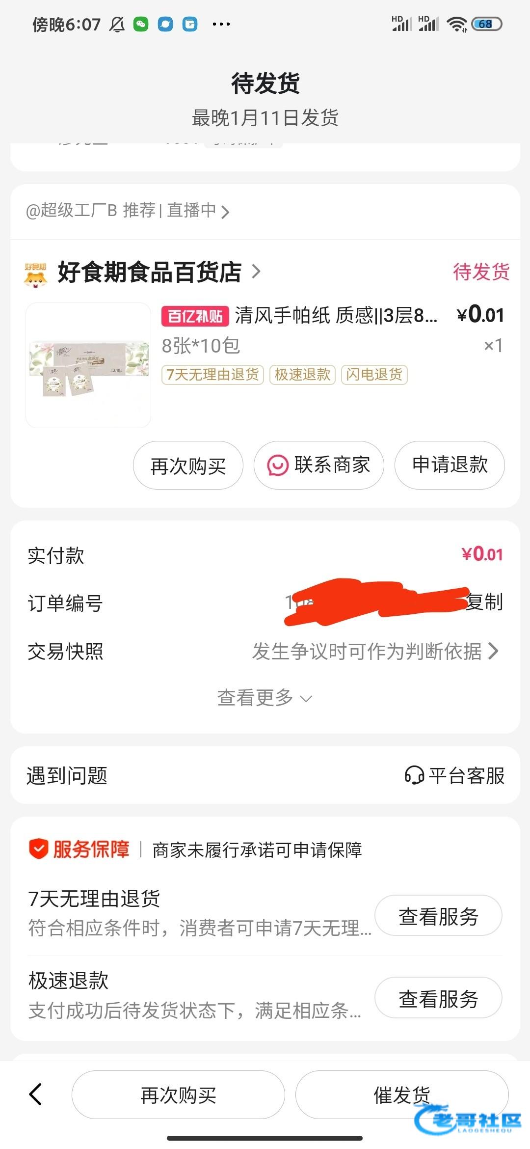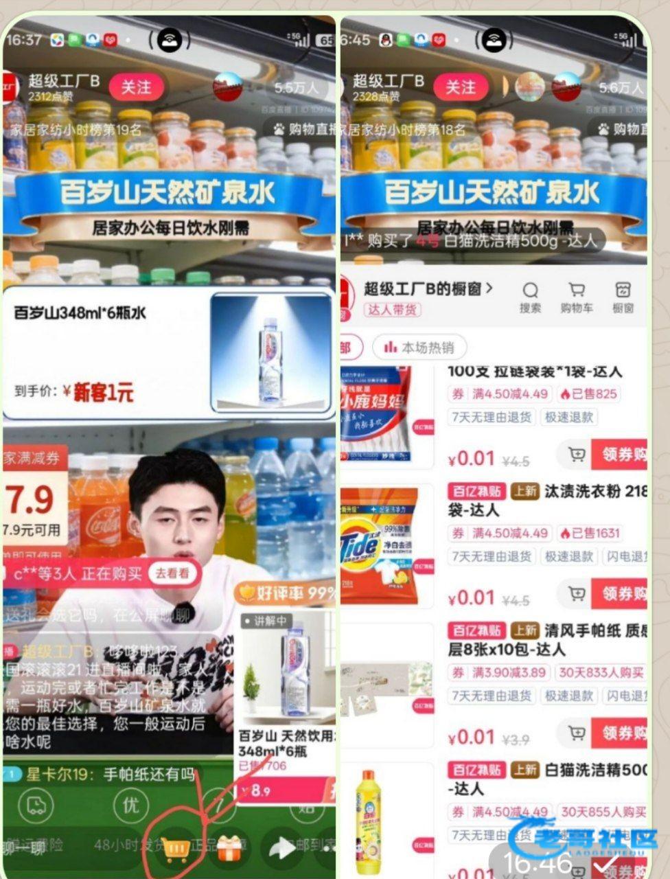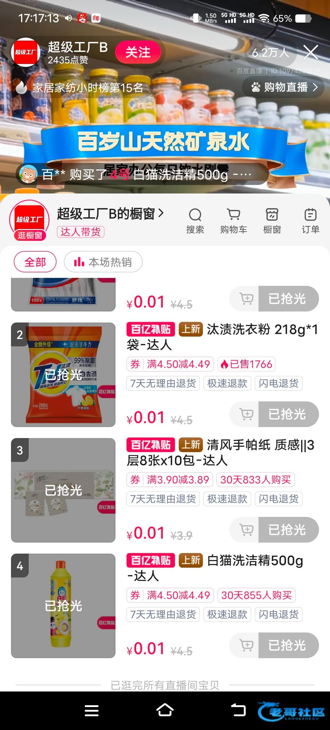 需要百度打开才行,打开直播点购物就看到了,需要纸巾的买纸巾,还有洗衣粉那些,看你们需要哪个,买完换号,多号多撸的