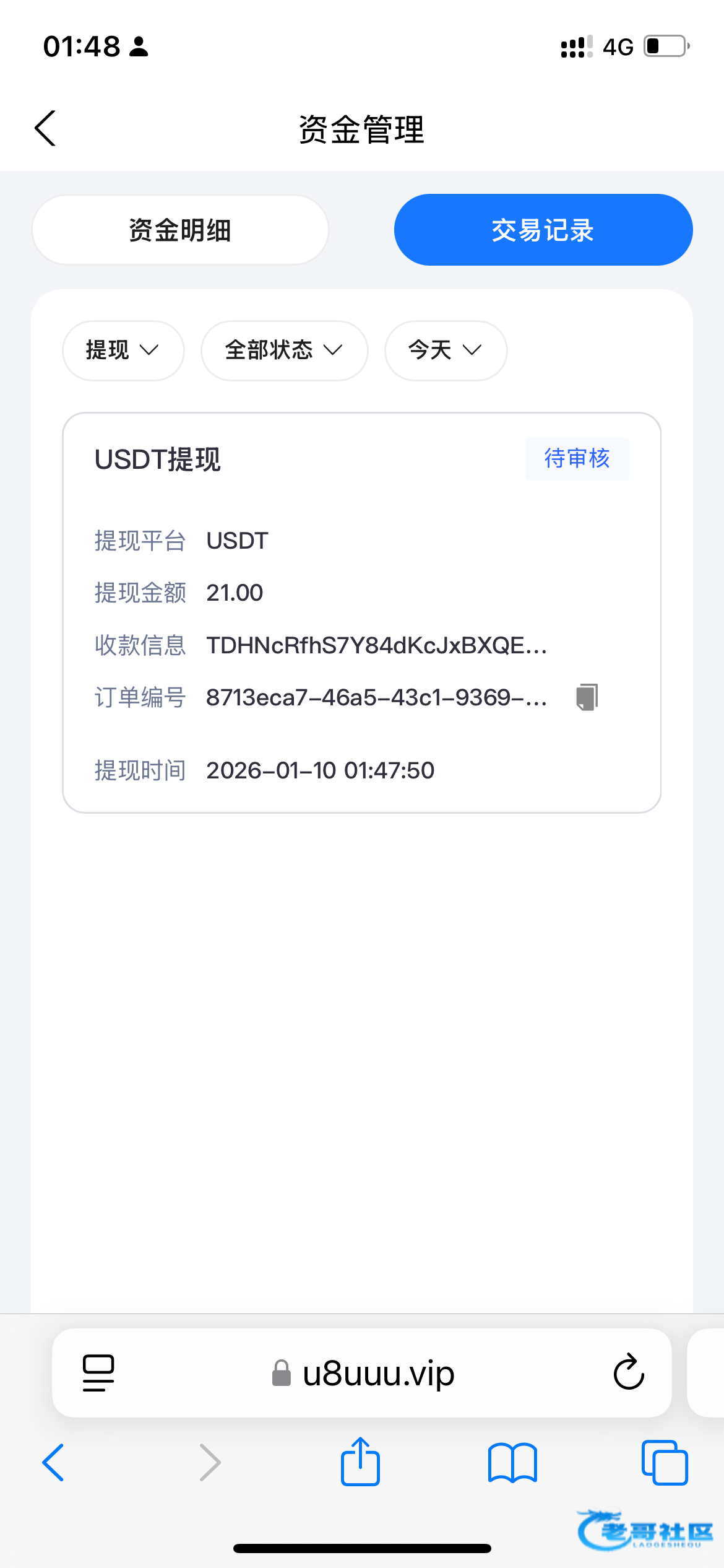 提现71u 到账
