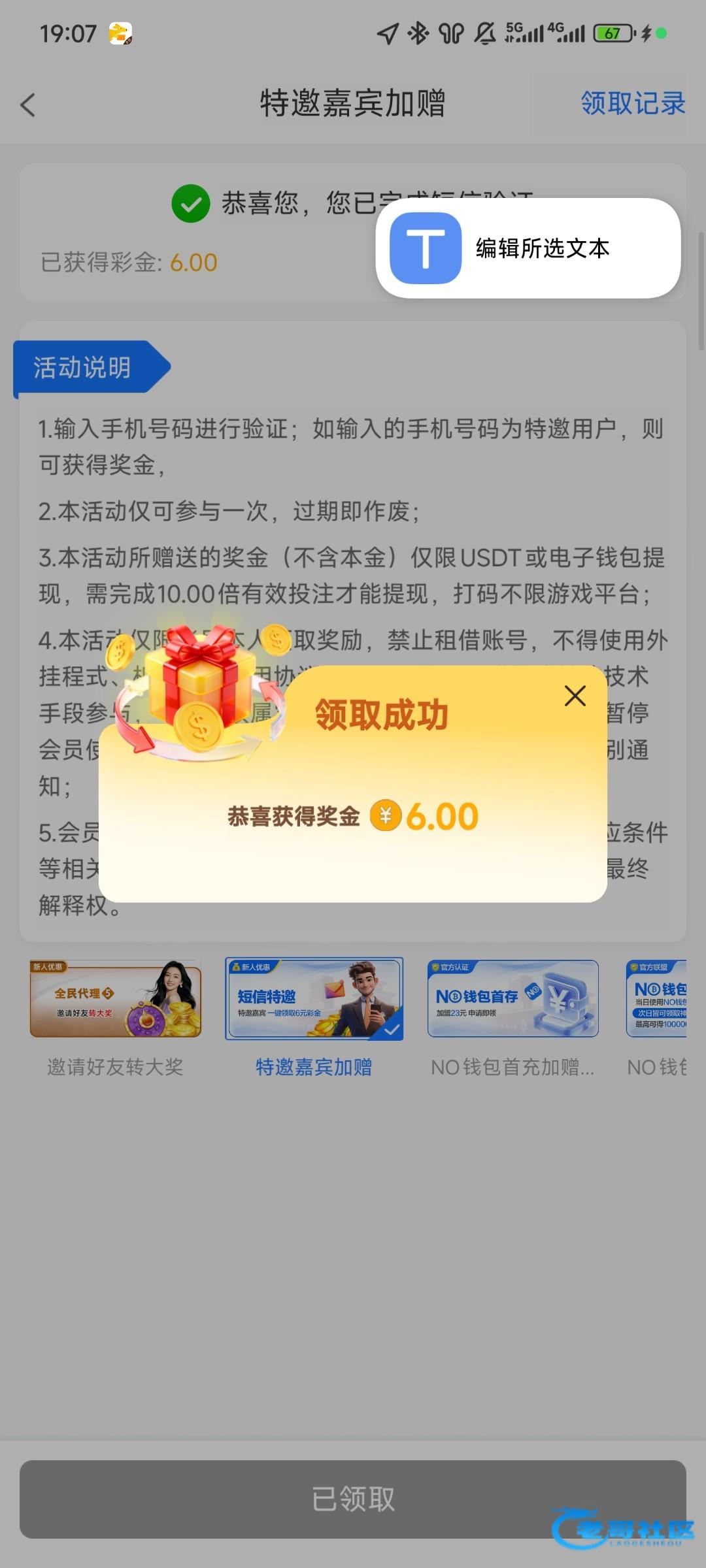 领不到啊老哥,输入了号码显示该号码已被使用