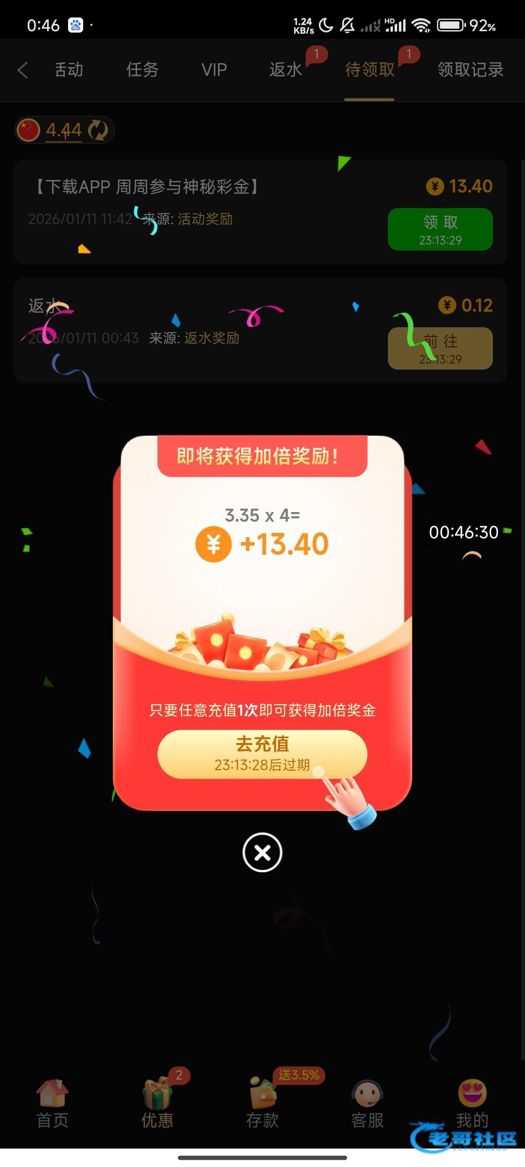 要每周充值达标才有,这个比台子你不充永远不送