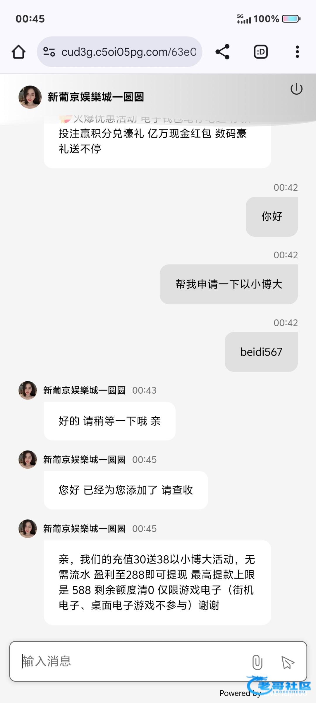 我刚注册没充值,找客服申请,他直接给我了打挂了