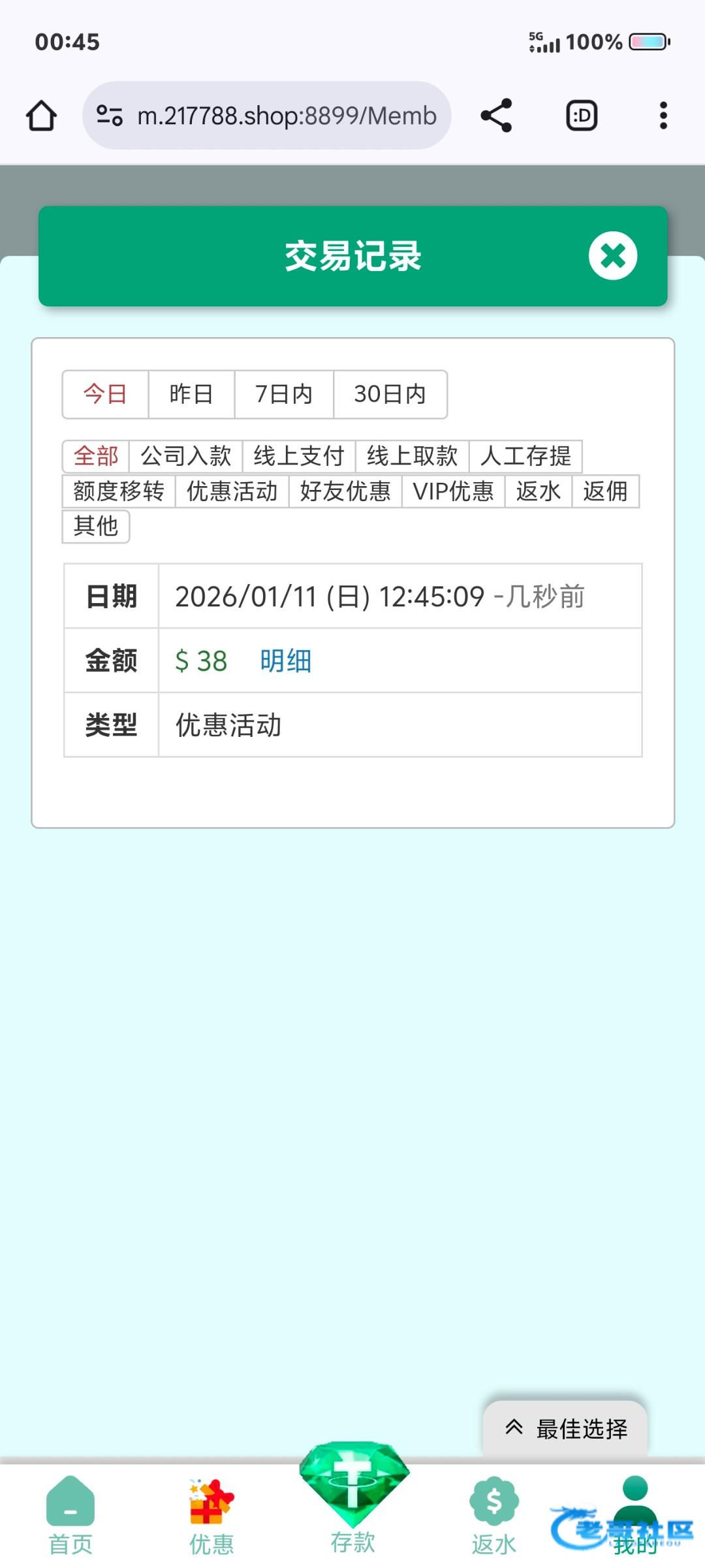 凌晨睡不着来逛论坛看到有个老哥发的这个台子充30送38我就去玩了,麻将前面之前进了六七次全是几块几十块,不抱有希望了结果最后一次进给了200多倍,最后下了480,回论坛想在帖子留言给发帖那个老哥团包烟,结果看不到那个帖子了。这个老哥看到的话留一下蓝码,给你团包烟。