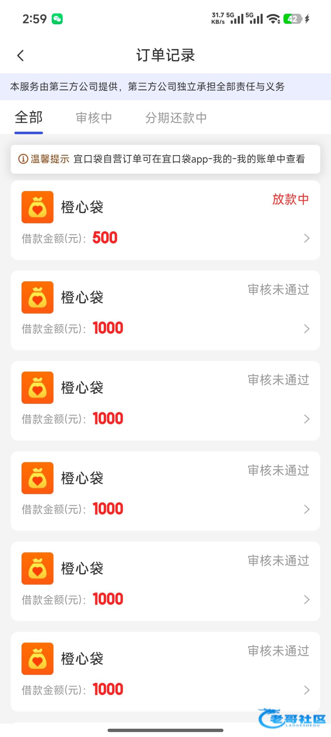 老哥们宜口贷的橙心贷今天晚上有水我征信各种黑给放款了发工资