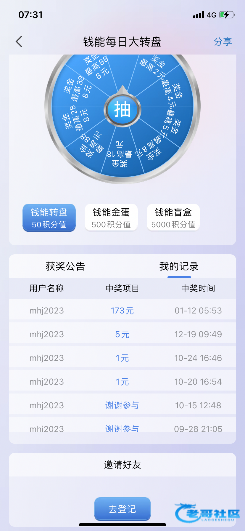 662钱能积分转盘 一次给了172