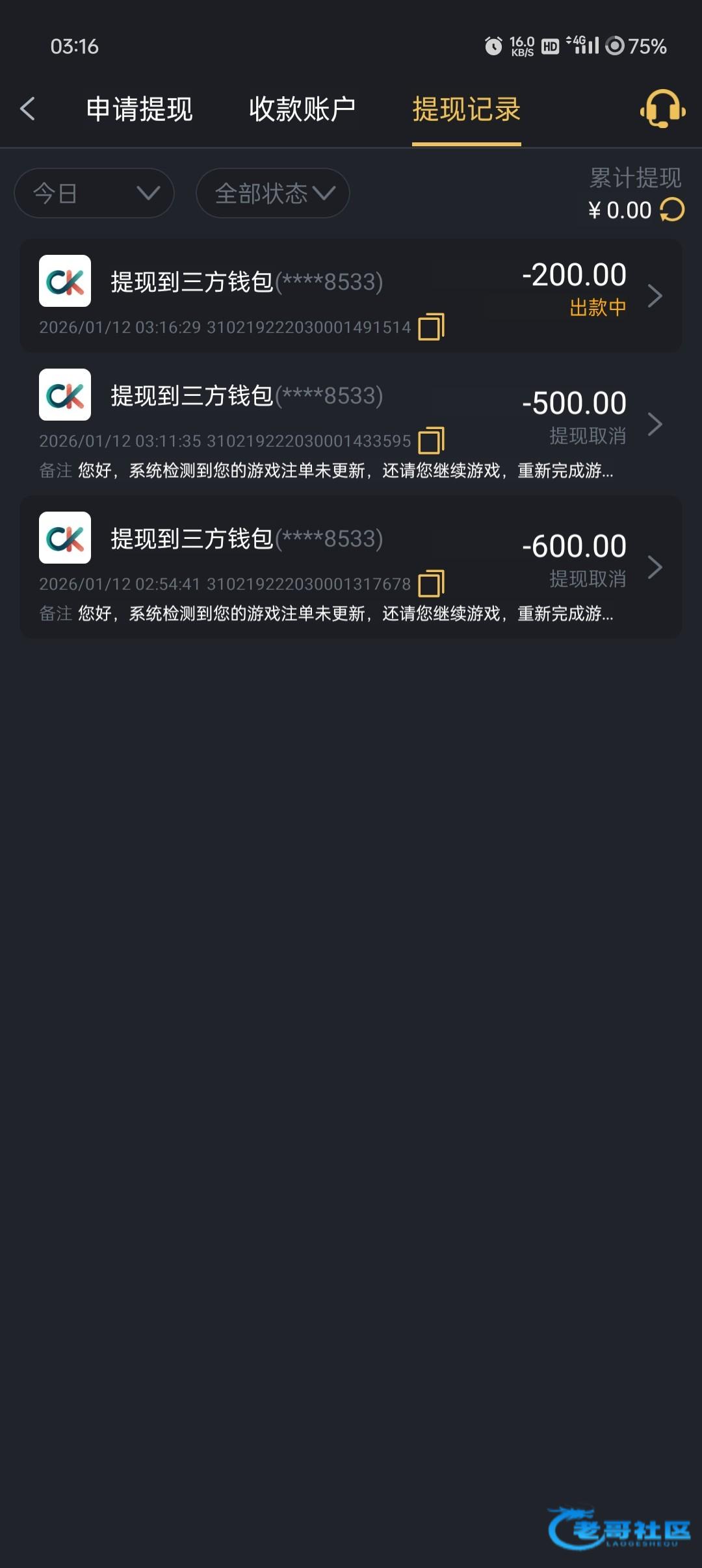 刚开始论坛搜了下看有记录的,然后充了100想着赢个几百应该不会黑,结果就是一开始注单不更新,后面剩200再提直接罚5倍流水,避雷吧,网址6367.com,大水都在黑平台