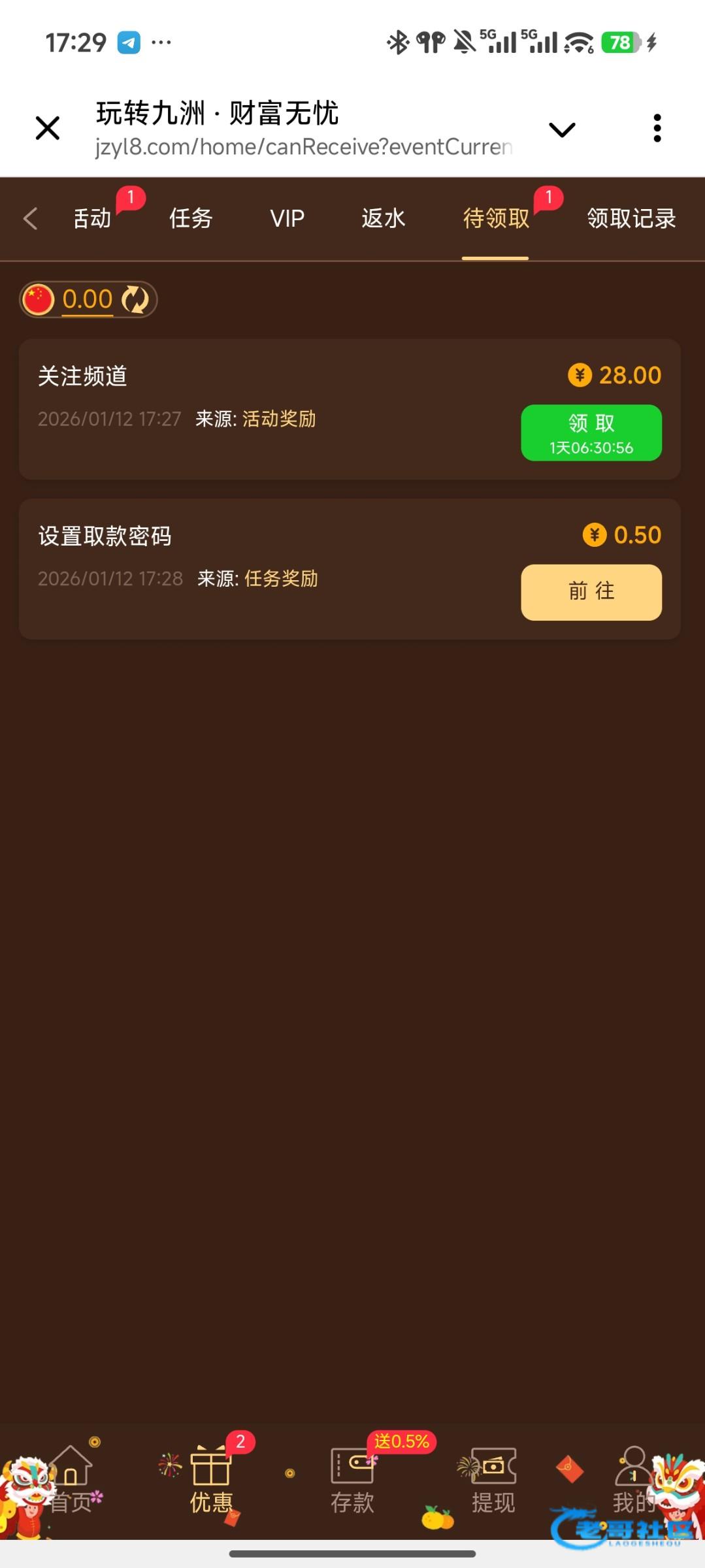 没领到,没充值过