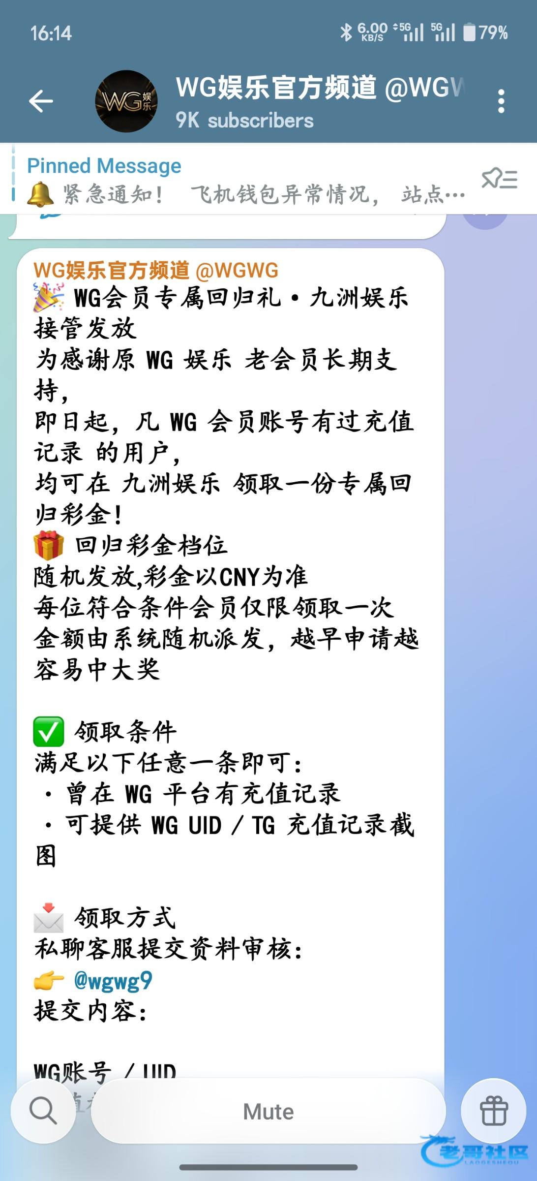 原飞机wg改版成九州,有过充值记录的,领取回归彩金,就是那个之前经常抢红包的wg。领取方式如图。客服@wgwg9