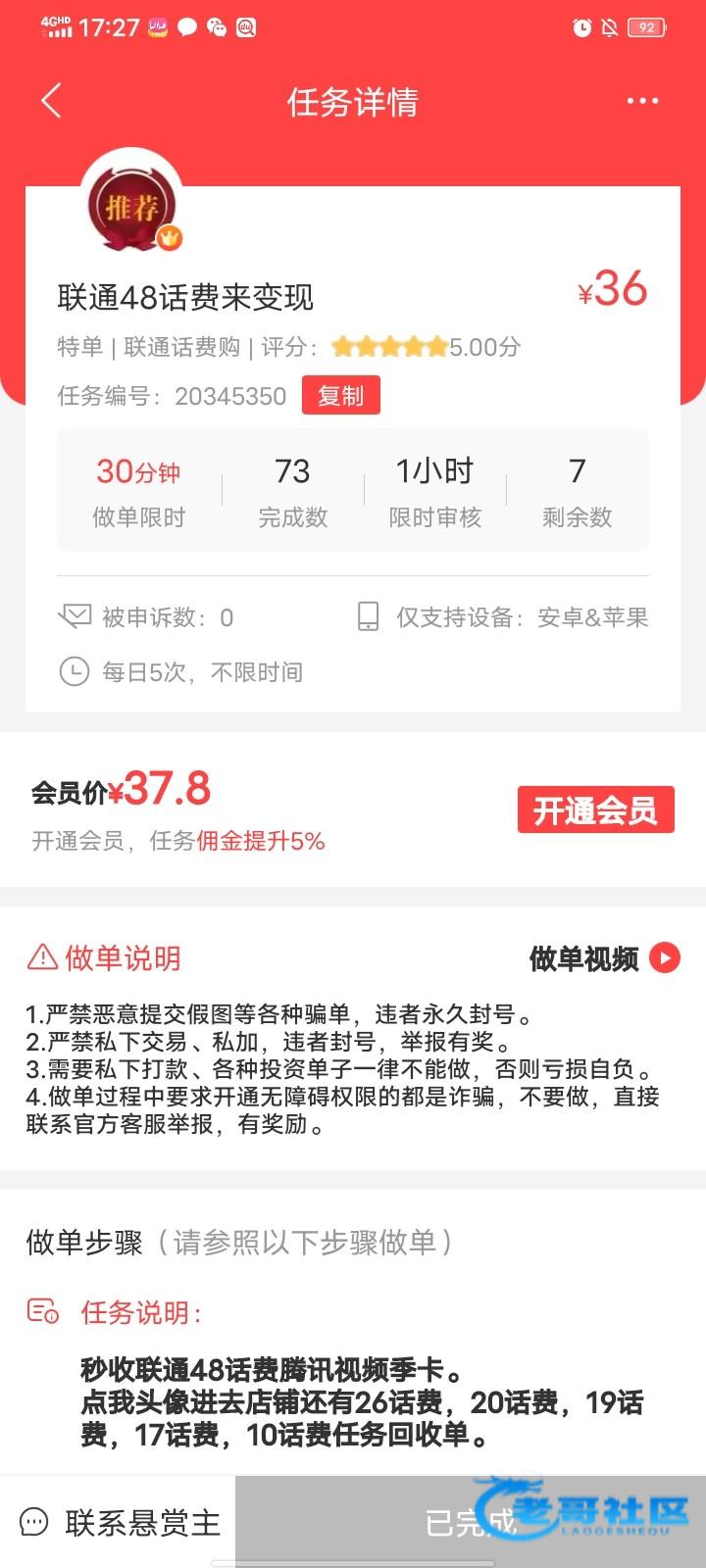 登录联通app,权益里面用话费买腾讯视频季卡,48元一个,去任务平台提交36一个收。只适用于目前吃不起饭的老哥,我话费0元买了三张