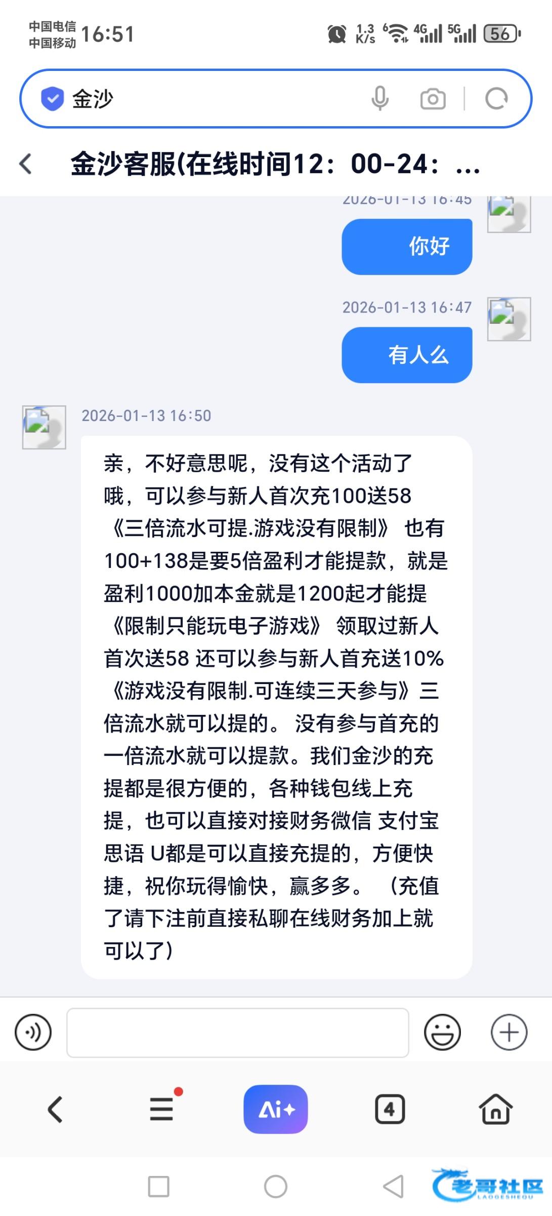 亲,不好意思呢,没有这个活动了哦,可以参与新人首次充100送58《三倍流水可提.游戏没有限制》 也有100+138是要5倍盈利才能提款,就是盈利1000加本金就是1200起才能提《限制只能玩电子游戏》 领取过新人首次送58 还可以参与新人首充送10%
