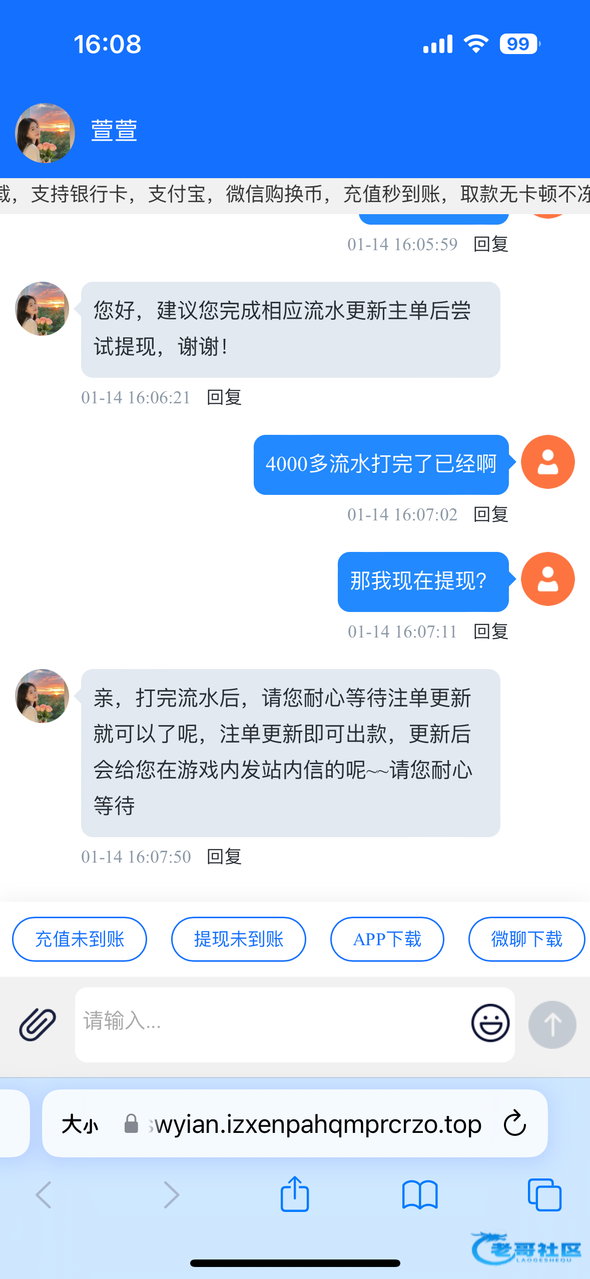 我冲了100流水打完了现在还没提问客服说还是没更新这是黑了?